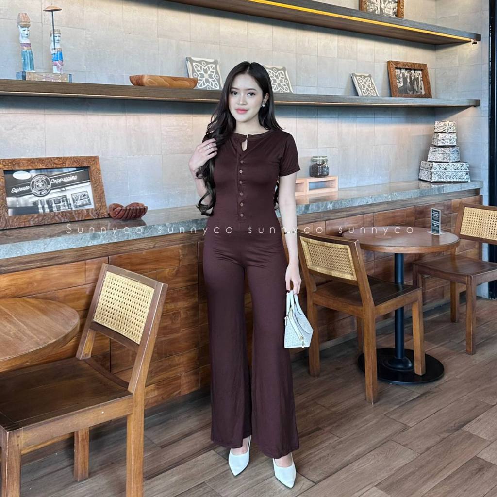 RAINA JUMPSUIT PANJANG WANITA / JUMPSUIT KANCING SPANDEKS