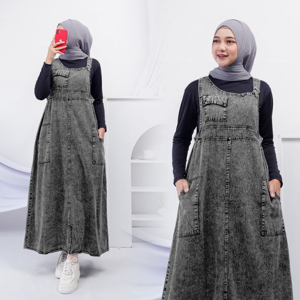 LEA OVERALL JEANS WANITA PINGGANG KARET RETRO
