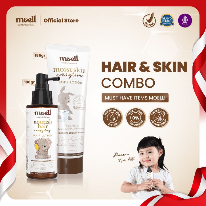 Moell Hair & Skin Combo Bundling Body Lotion 185gr & Hair Lotion 100gr - Perawatan Badan & Rambut Bayi Anak Formulasi Do