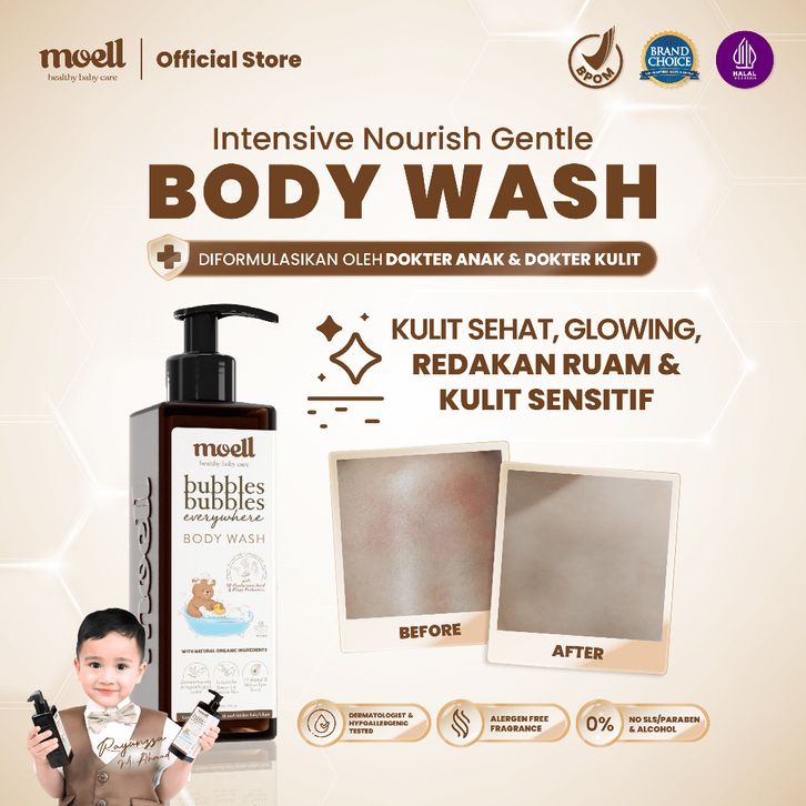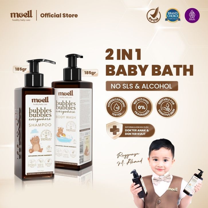 Moell Gentle Body Wash 185gr & Shampoo 185gr - 2 IN 1 Baby Bath Sabun & Sampo Bayi Anak Cegah Eksim - Aman untuk Kulit S