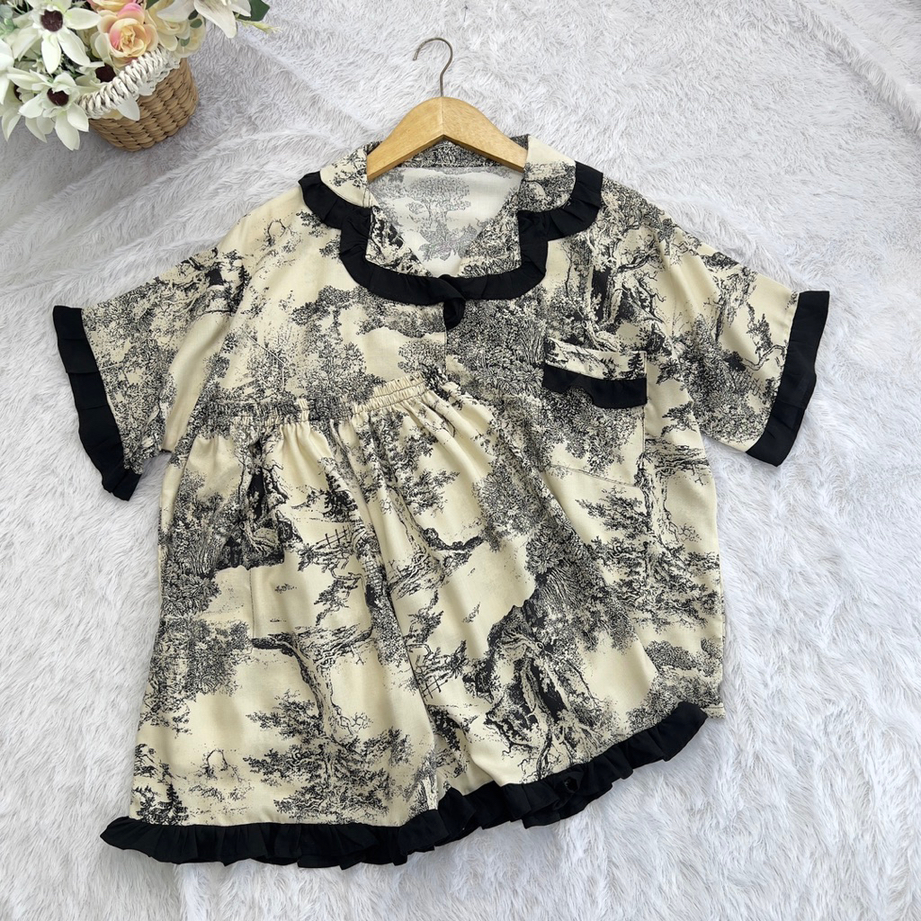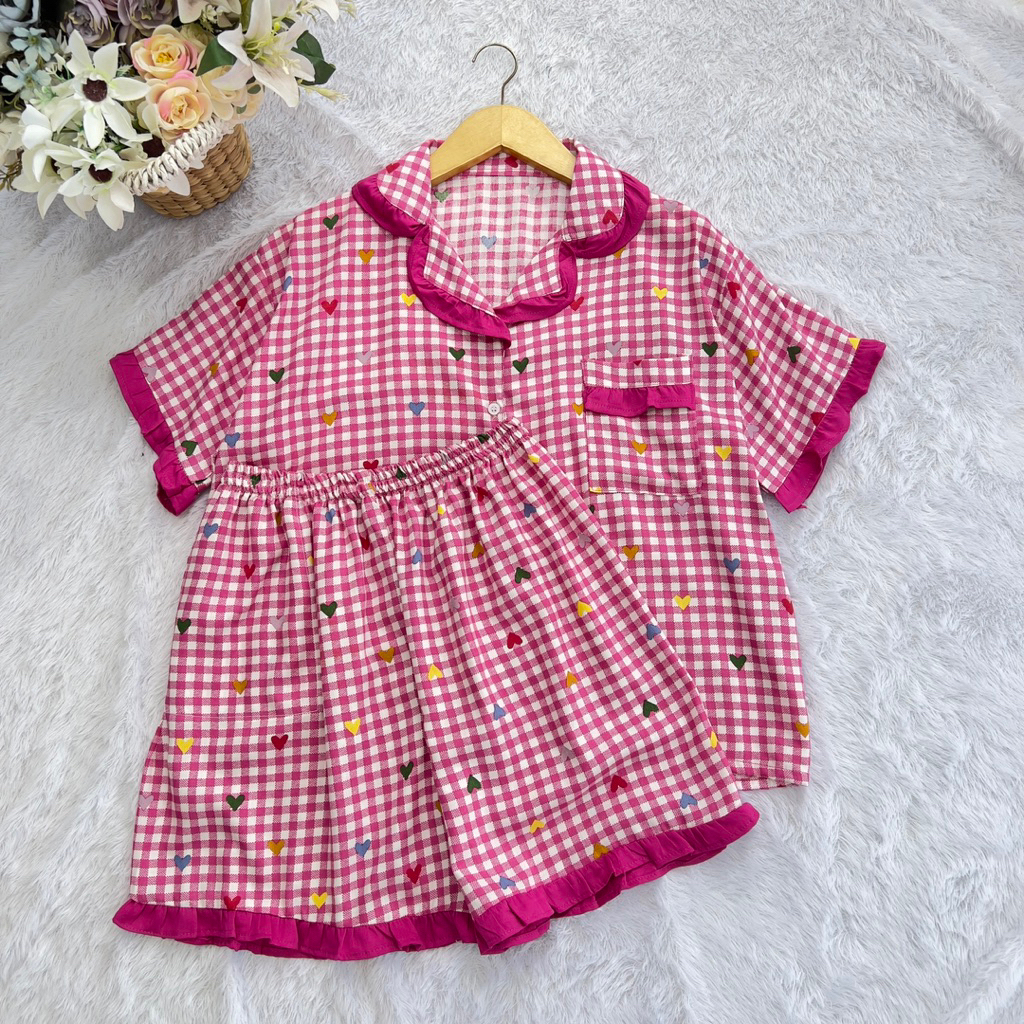 PIYAMA LOVA ONE SET BAJU TIDUR WANITA CELANA PENDEK LD 120