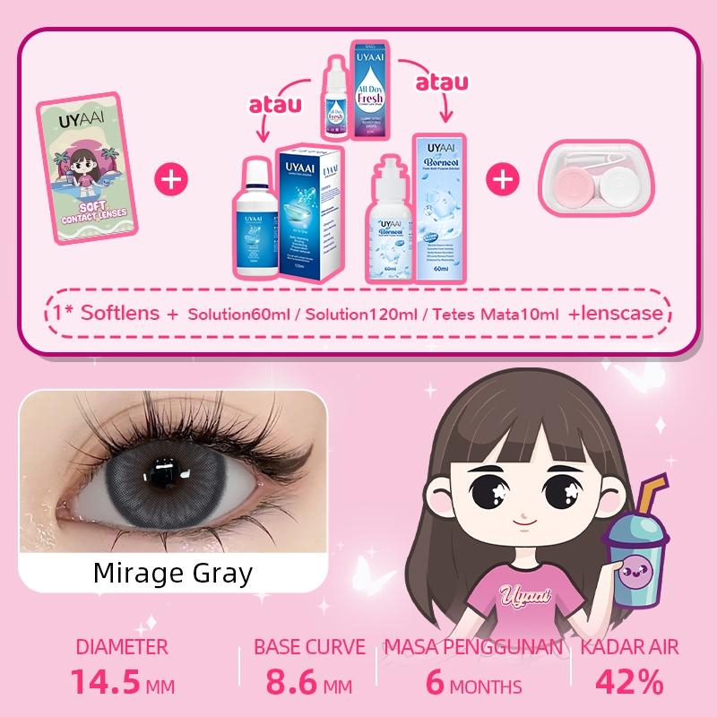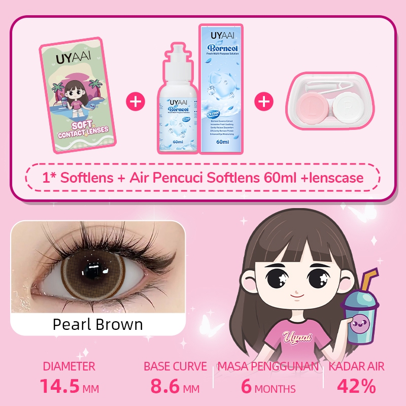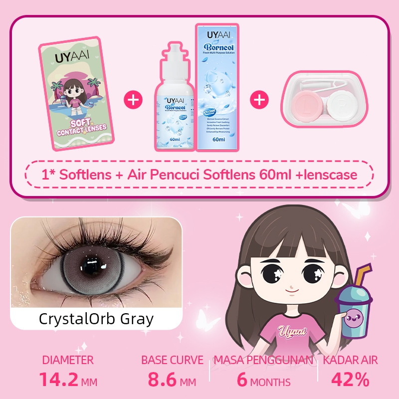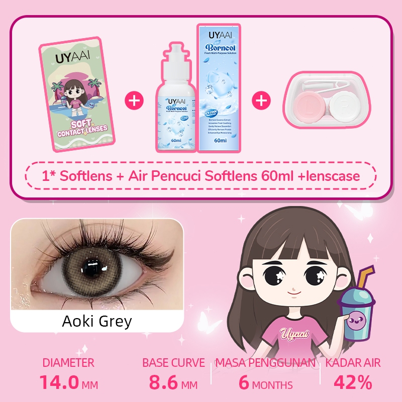 [Mall] UYAAI SOFTLENS NORMAL 14.00-15.00MM 1PASANG SOFTLENS+120ML AIR PENCUCI SOFTLENS+LENSCASE