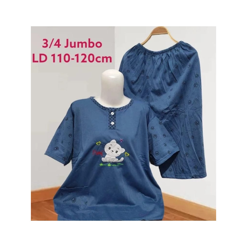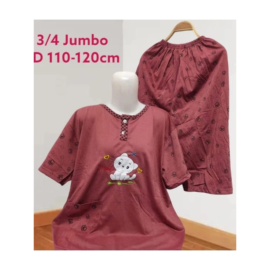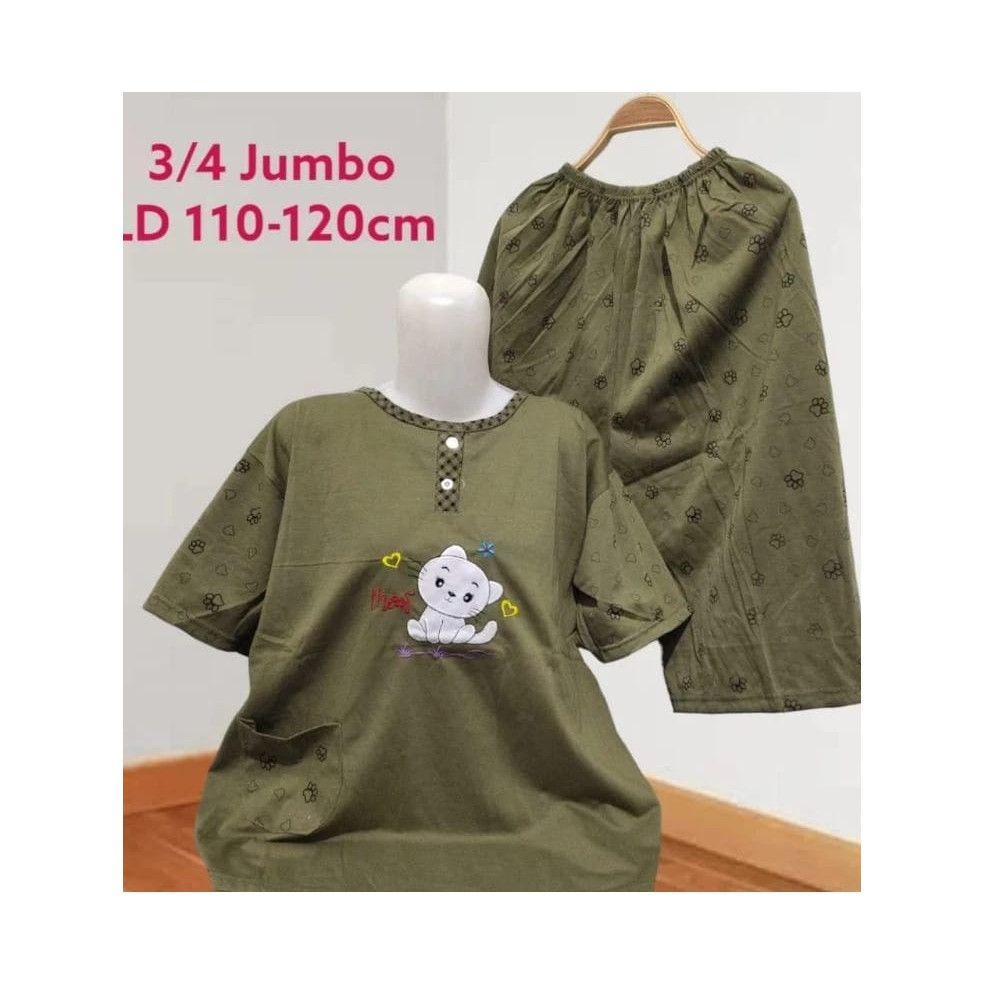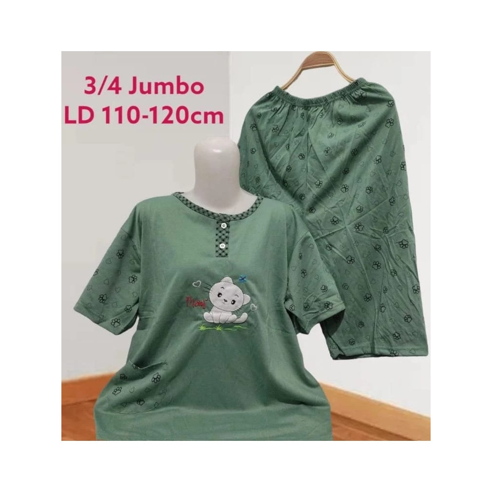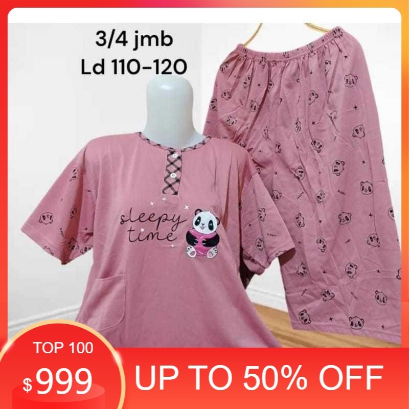 SETELAN BAJU TIDUR KAOS CELANA 3/4 JUMBO 3XL BIG SIZE BABYDOLL WANITA LD 110-120CM BAYAR DI TEMPAT BAHAN TEBAL AN HARGA TERJANGKAU
