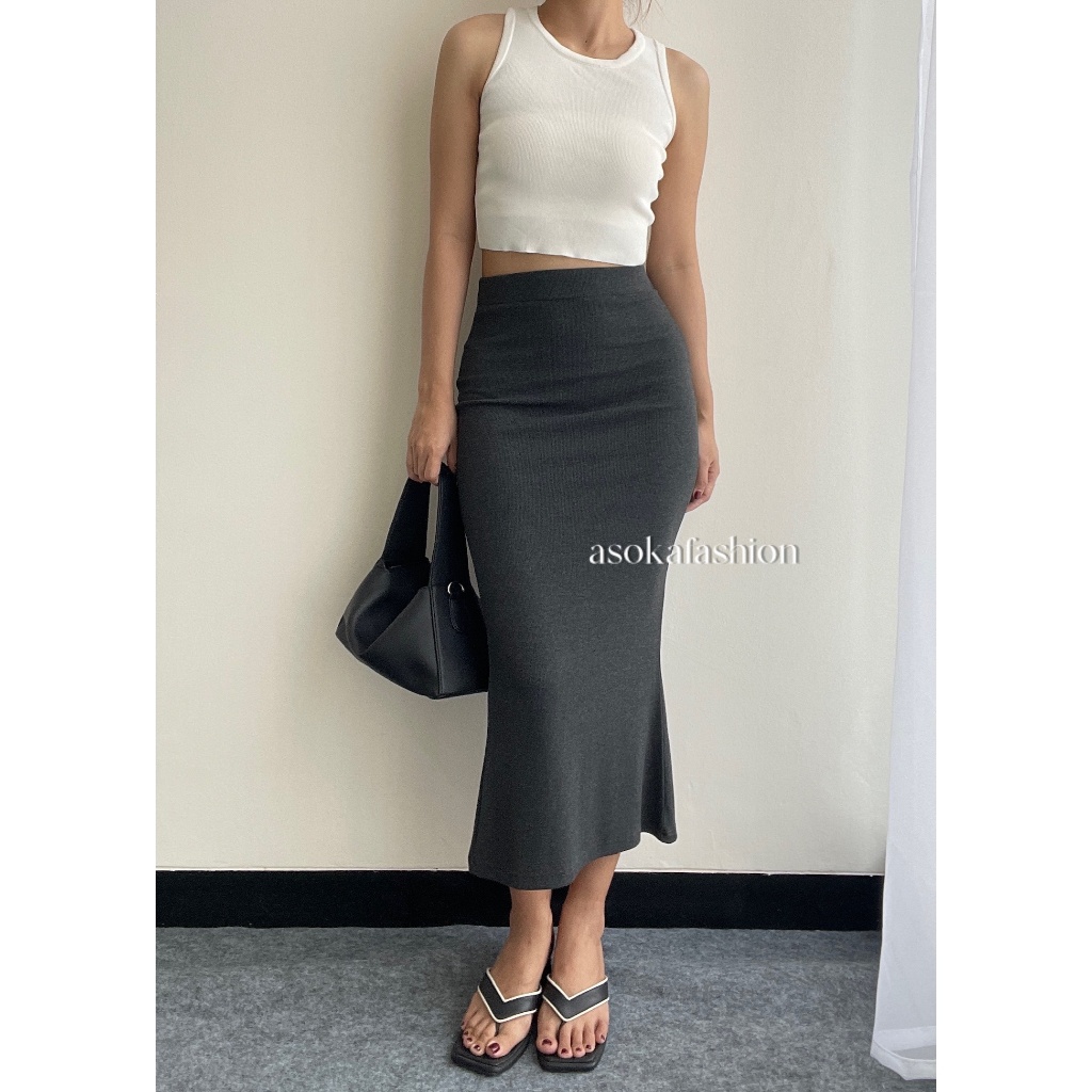 ASOKA SOHEE SKIRT 3137 - BAWAHAN WANITA ROK PANJANG - WOMEN SKIRT KNIT SLIT A-LINE MIDI