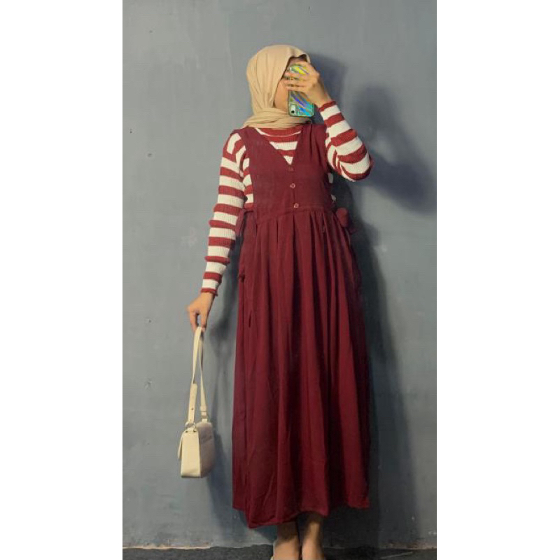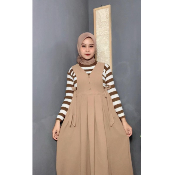 SETELAN OVERALL SASA BAHAN CRINGKLE DAN DAISY STRIPE RAJUT