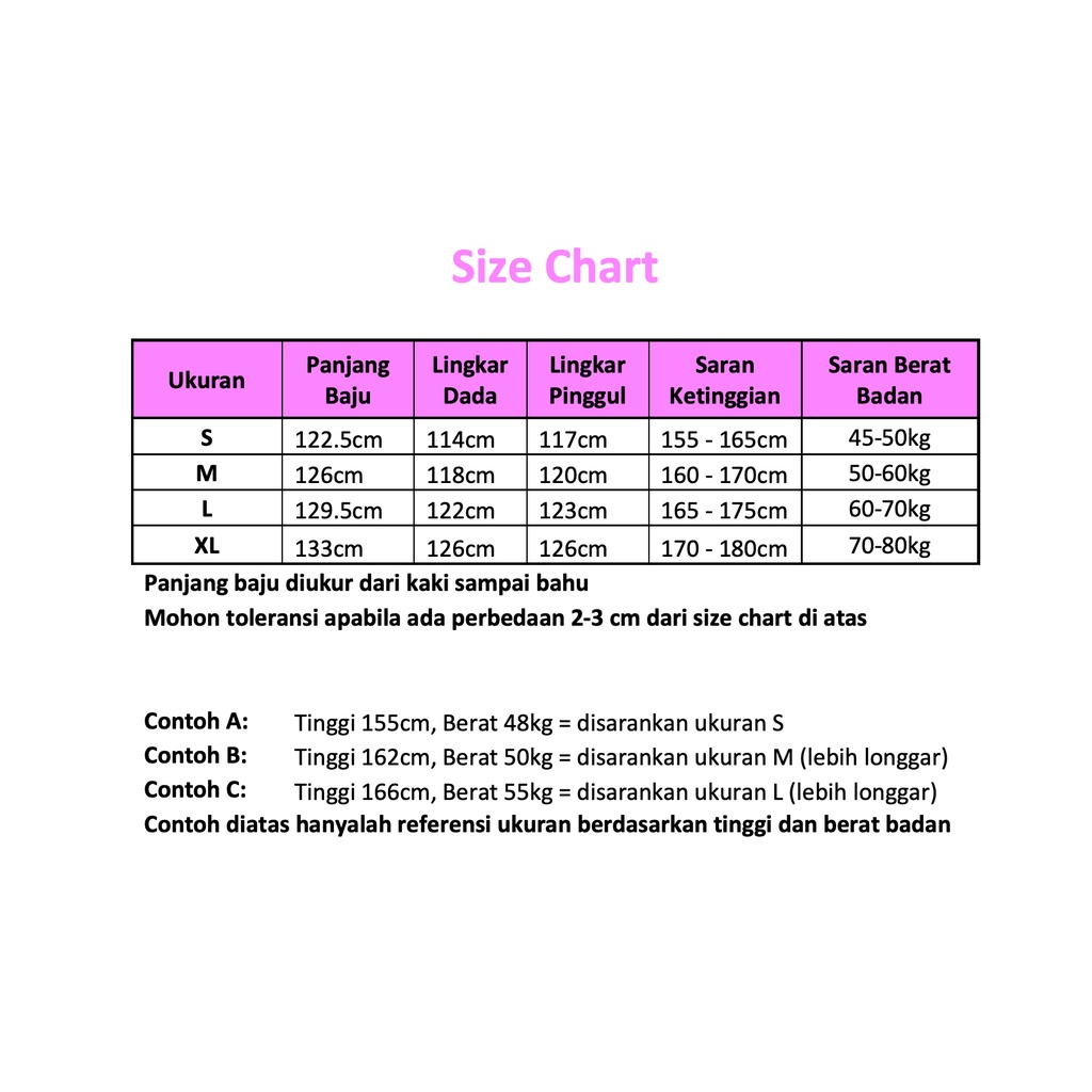 S, M, L, XL, ANAK 100CM, ANAK 110CM, ANAK 120CM, ANAK 130CM, ANAK 140CM