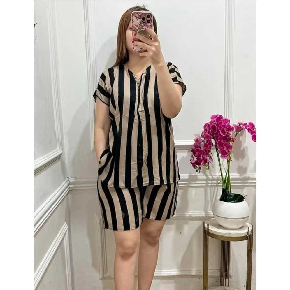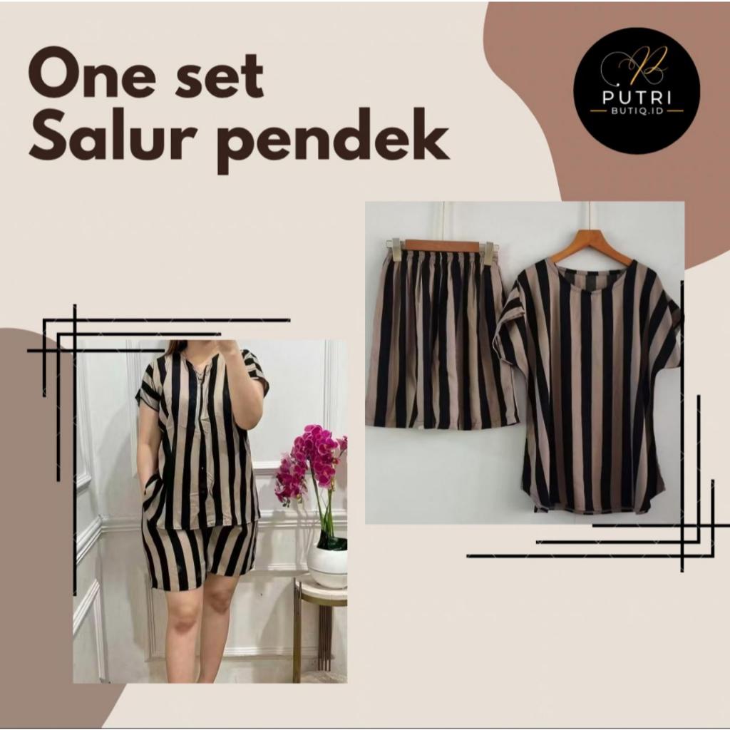 ONE SET TERBARU SETELAN PENDEK GARIS-GARIS / ONE SET PENDEK PREMIUM / SETELAN WANITA SALUR TERBARU