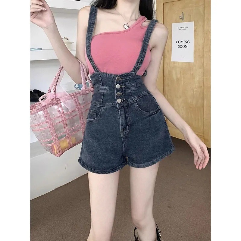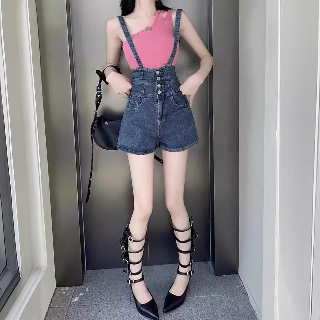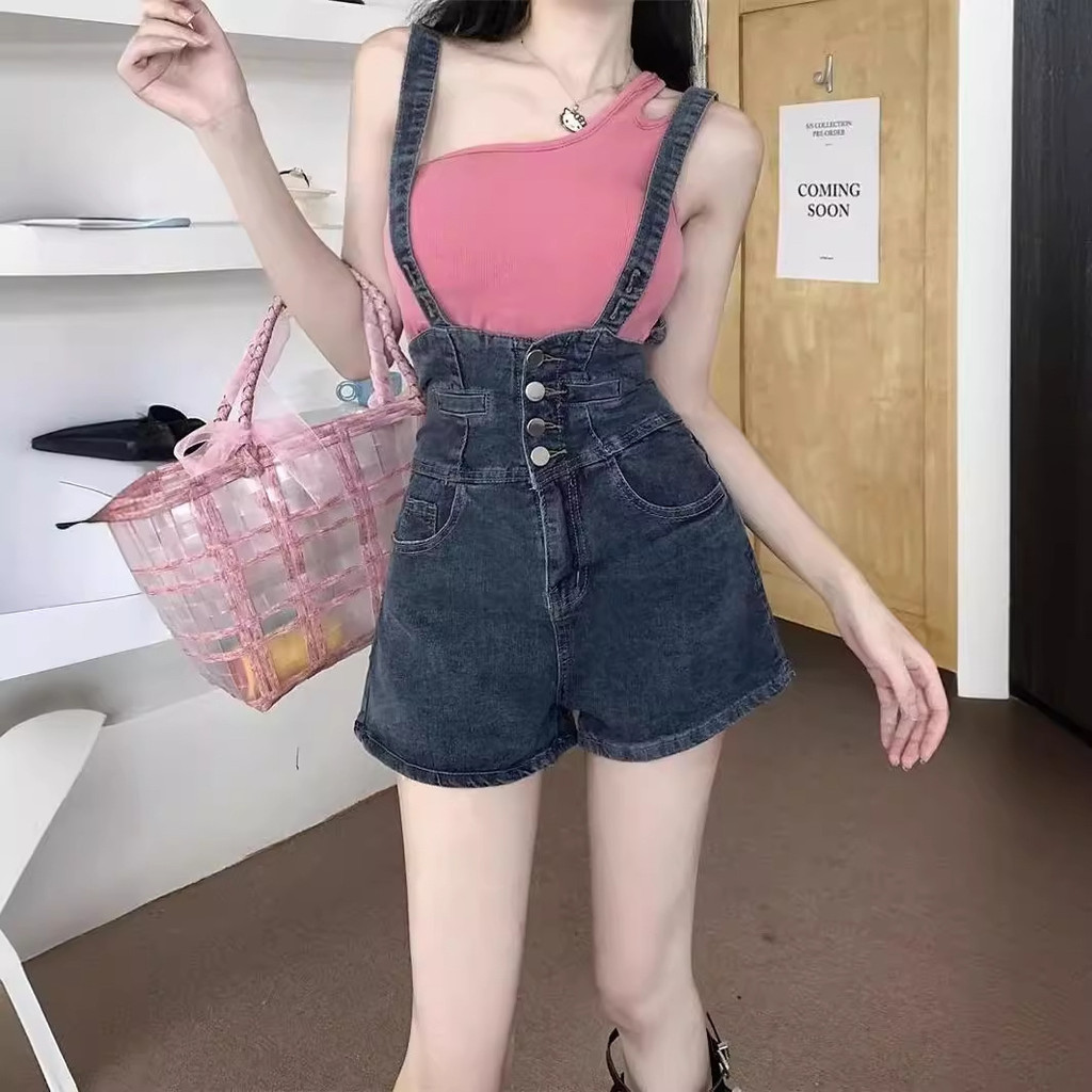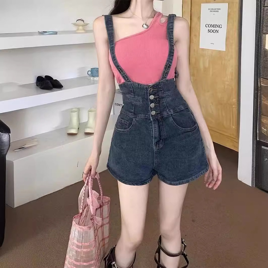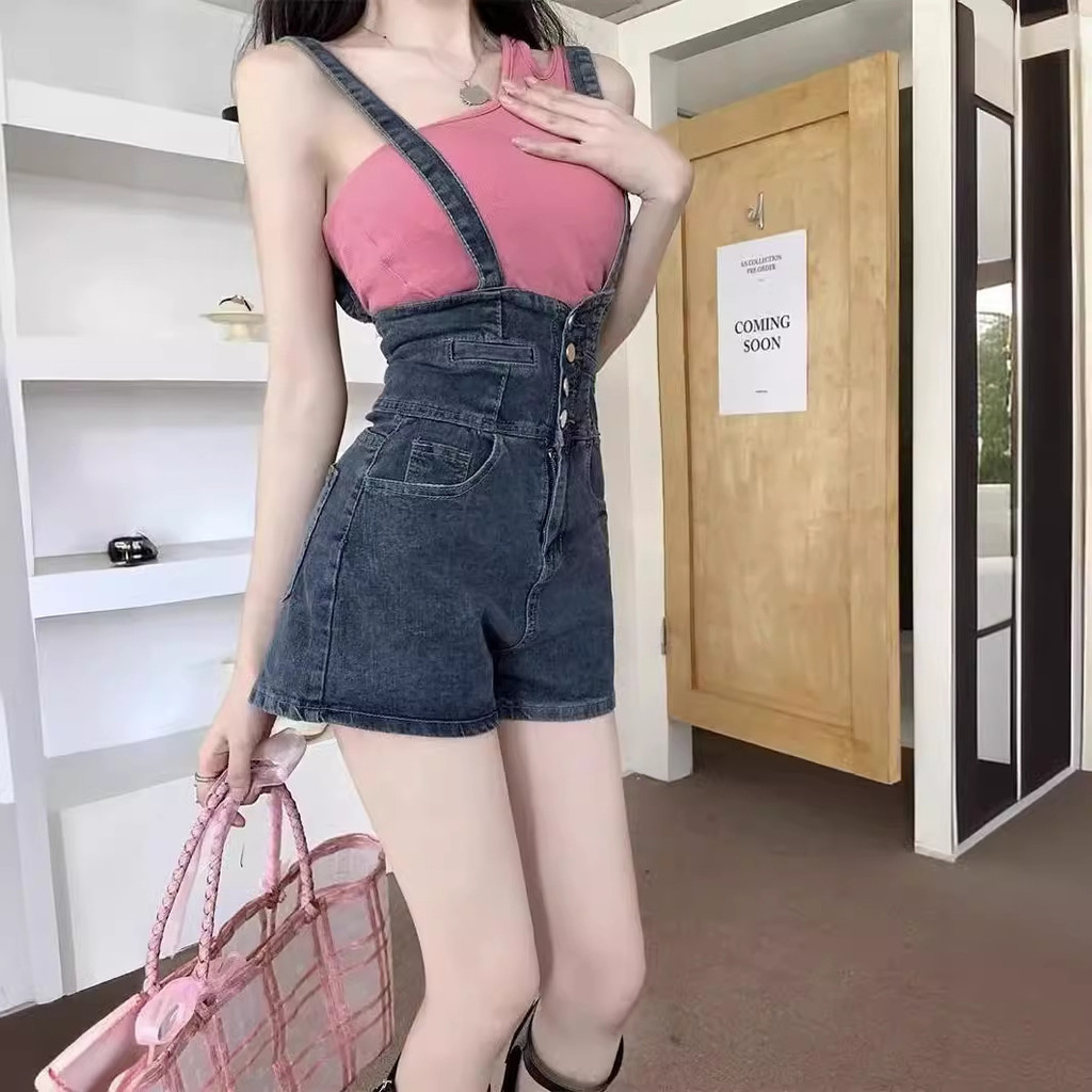 JUMPSUIT PINGGANG TINGGI JEANS SUSPENDER WANITA