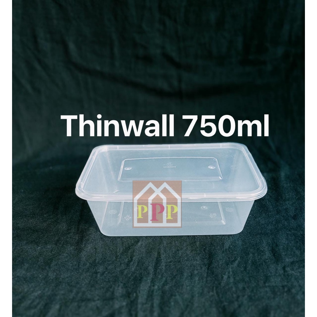 THINWALL RECTANGLE 750ML KOTAK PLASTIK ISI 25PCS + TUTUP