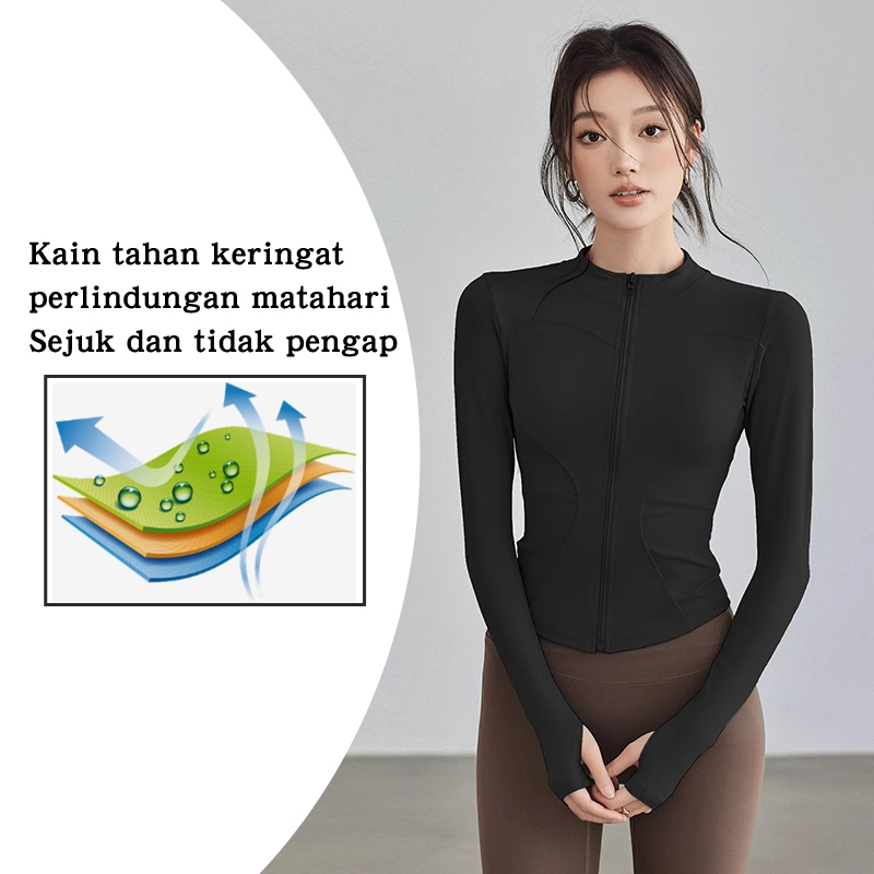 JAKET OLAHRAGA WANITA JAKET UV PROTECTION WANITA JAKET OLAHRAGA BAJU JAKET UV PROTECTION WANITA LARI WANITA LENGAN PANJANG UNTUK RUNNING OLAHRAGA YOGA