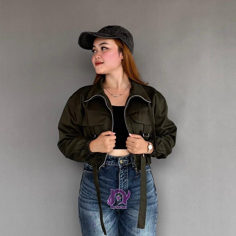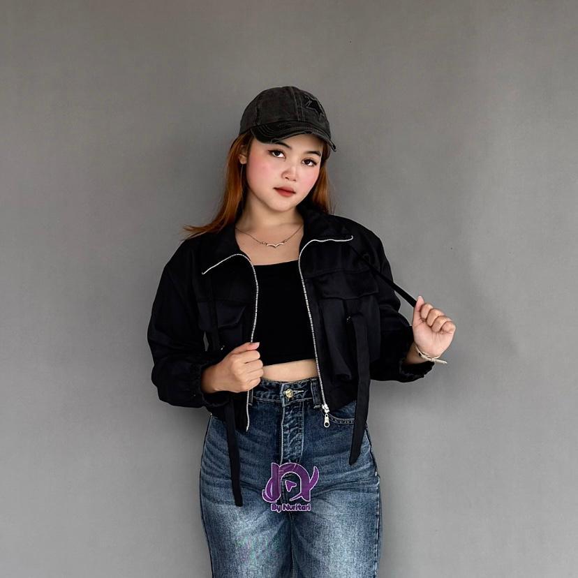 JOLA JACKET PREMIUM CROP T0P SAKU TALI KOREAN LOOK MATT AMERICAN DRILL