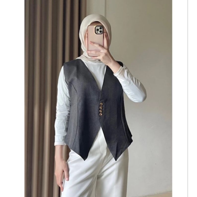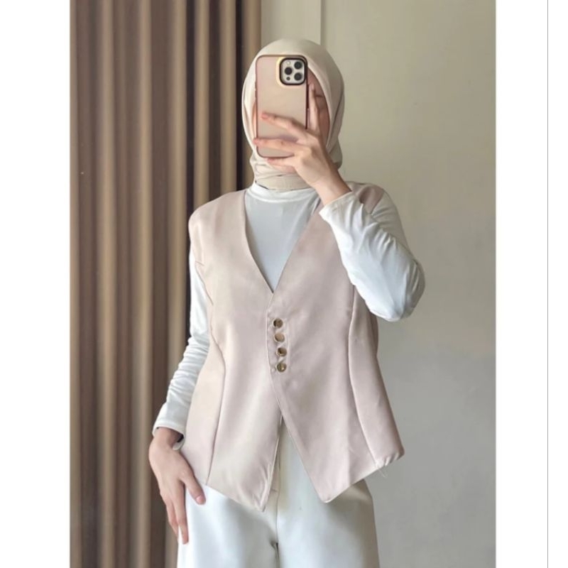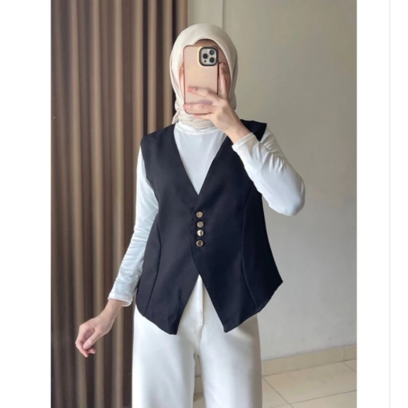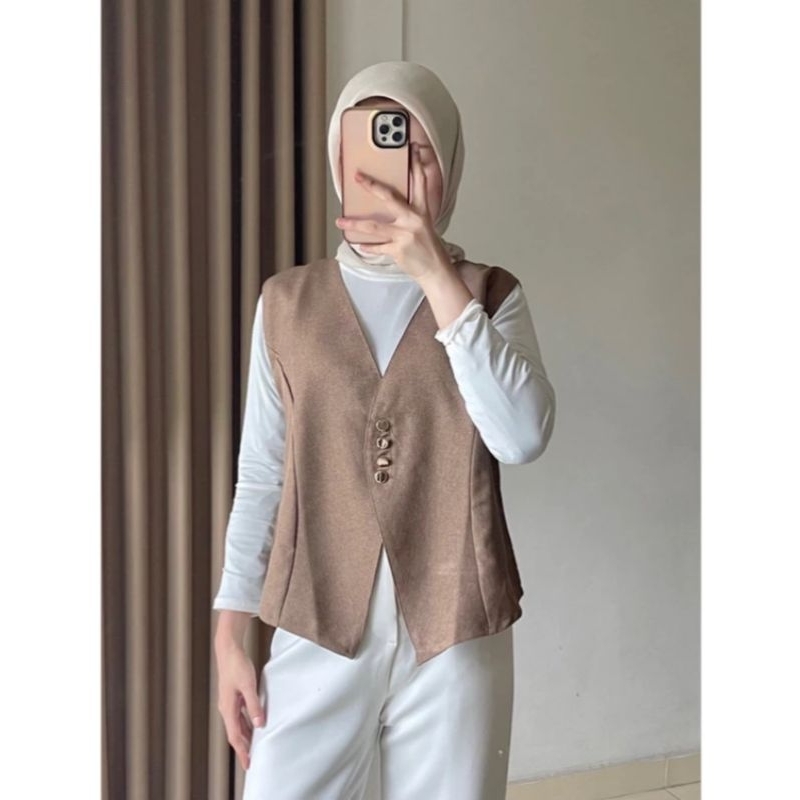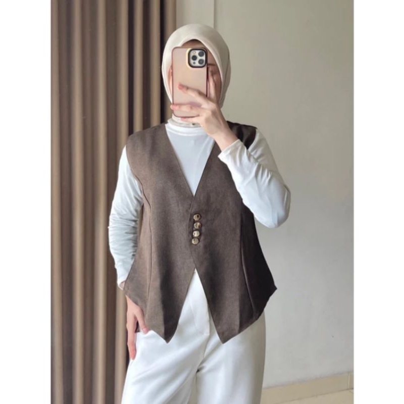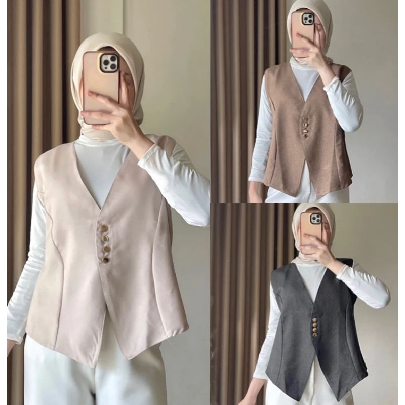 BRENDA VEST SEMI WOLL ROMPI OUTER KANCING PREMIUM V NECK ATASAN WANITA