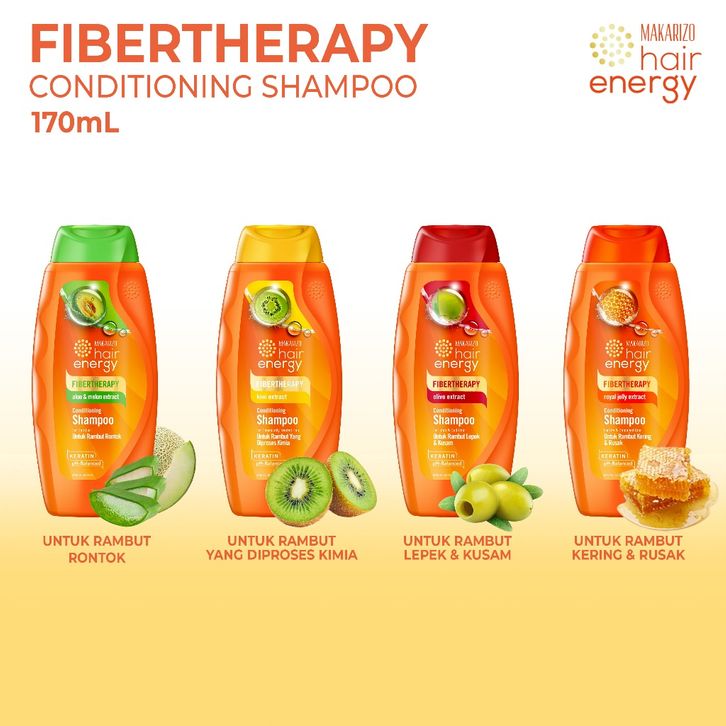 Shampo Anti Kusut Non SLS PAKET ISI 2 Makarizo Hair Energy Fibertherapy Conditioning Shampoo Olive 170 mL