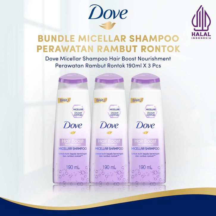 Shampo Anti Kusut Non SLS Dove Micellar Shampoo Hair Boost Nourishment Perawatan Rambut Rontok 190Ml x 3
