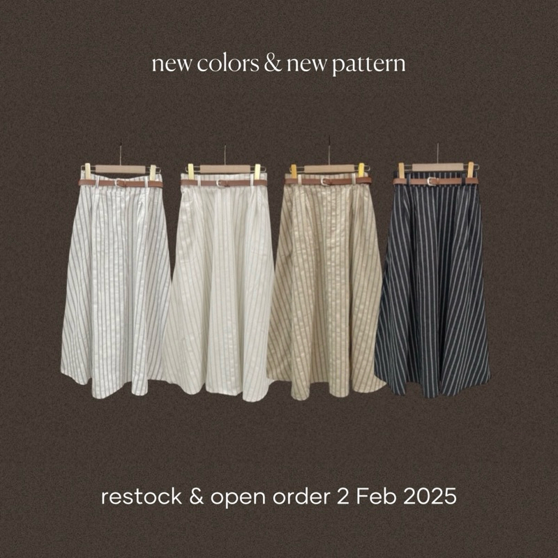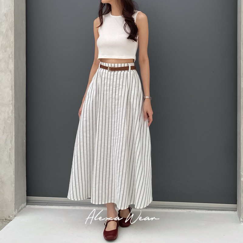 LUNA STRIPED SKIRT - ROK MIDI LINEN PANJANG WANITA FLARE