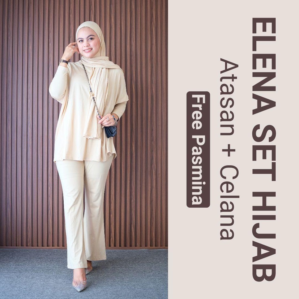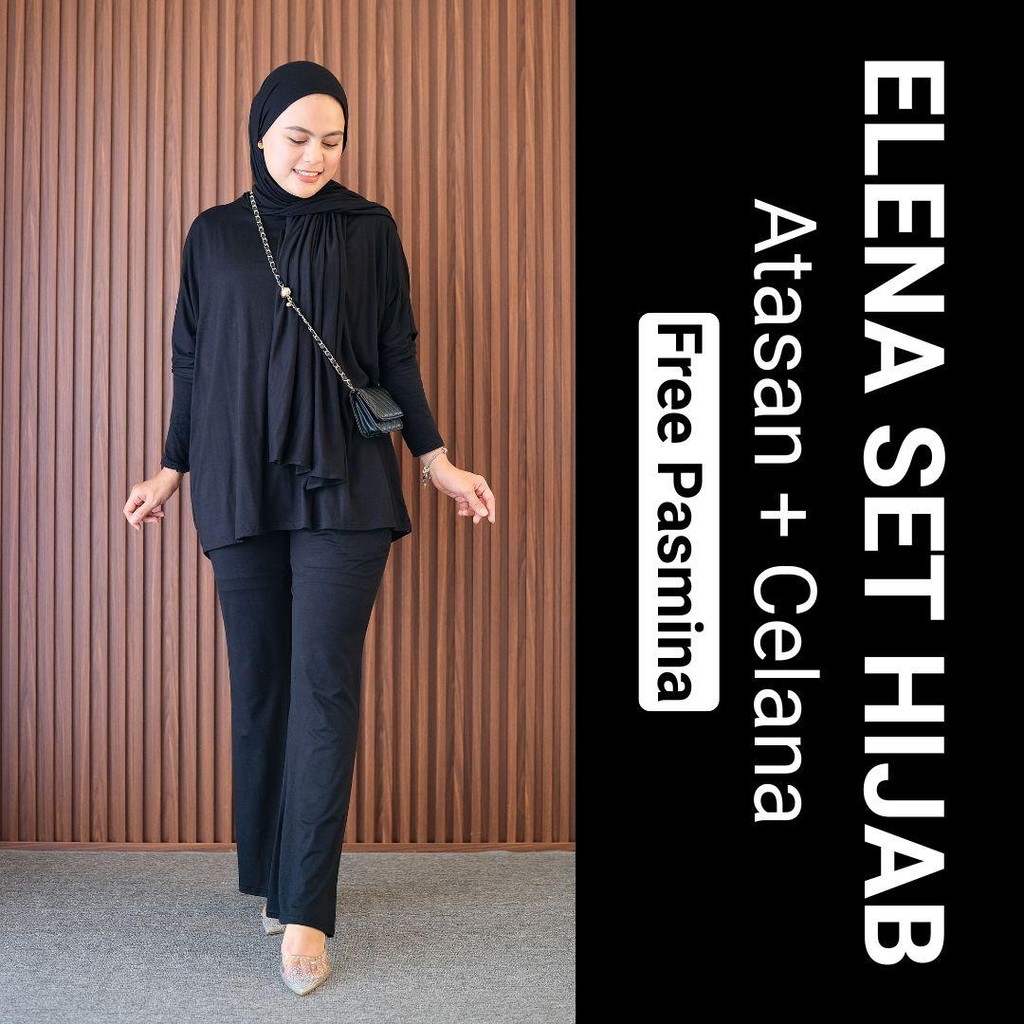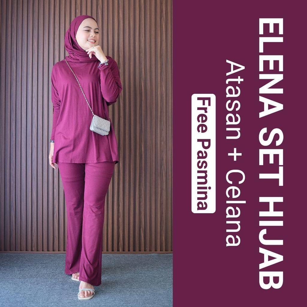 CLOTIVA ELENA SET ATASAN + CELANA + FREE PASMINA BAHAN RAYON PREMIUM TEBAL ADEM NYAMAN