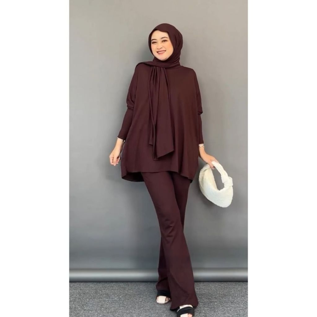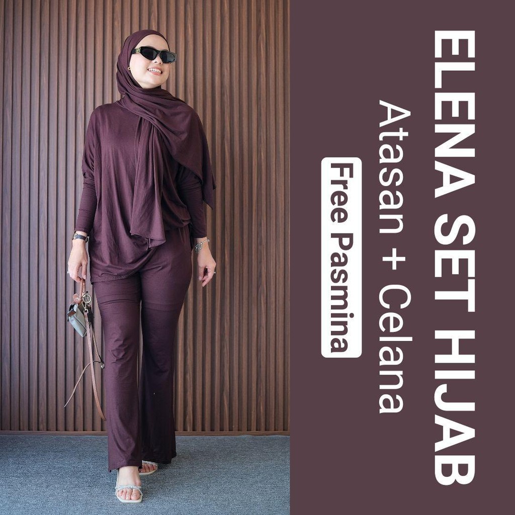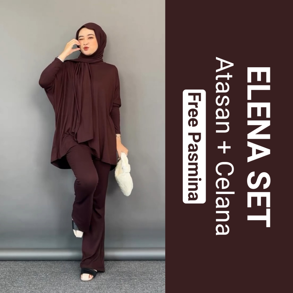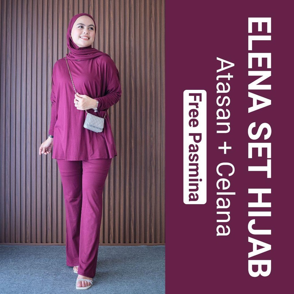 CLOTIVA ELENA SET ATASAN + CELANA + FREE PASMINA BAHAN RAYON PREMIUM TEBAL ADEM NYAMAN