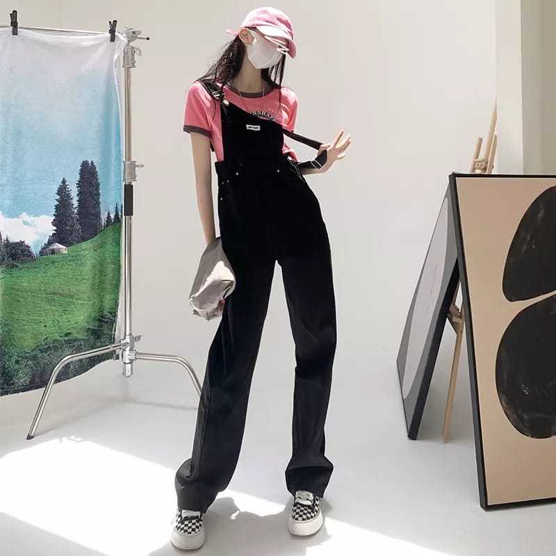 MURAH LEBAY - JUMPSUIT JEANS WANITA KOREAN STYLE OVERSIZE VINTAGE POLOS PREMIUM KEKINIAN CASUAL CELANA KODOK JEANS WANITA
