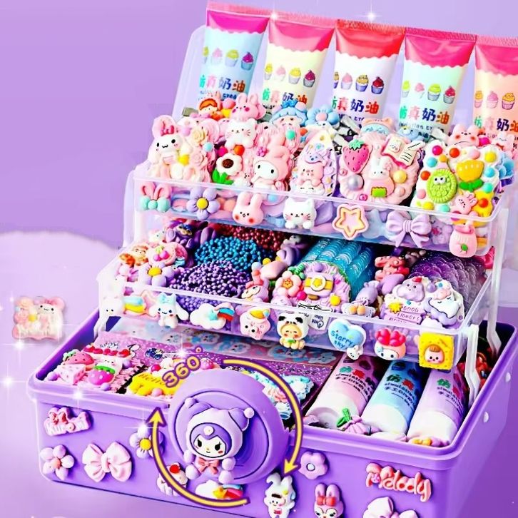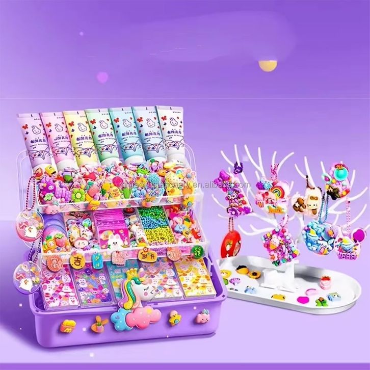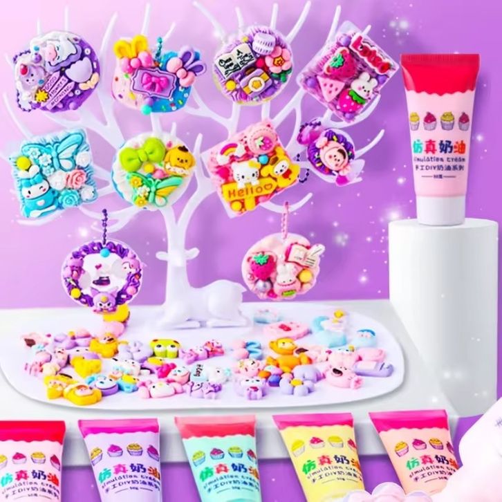 [Star] DIY Set Keychain Set Kotak Stiker Cream Kartun Mainan Merangsang Kreativitas Anak-anak