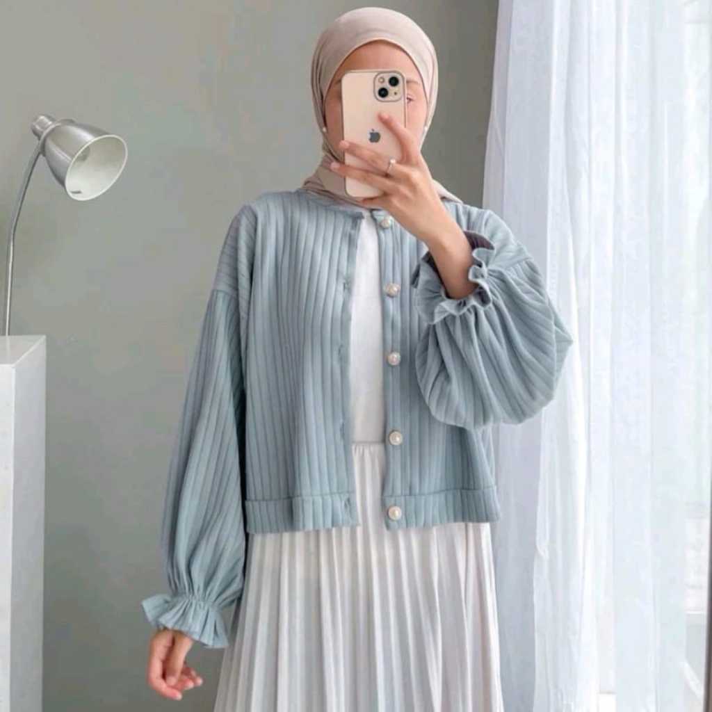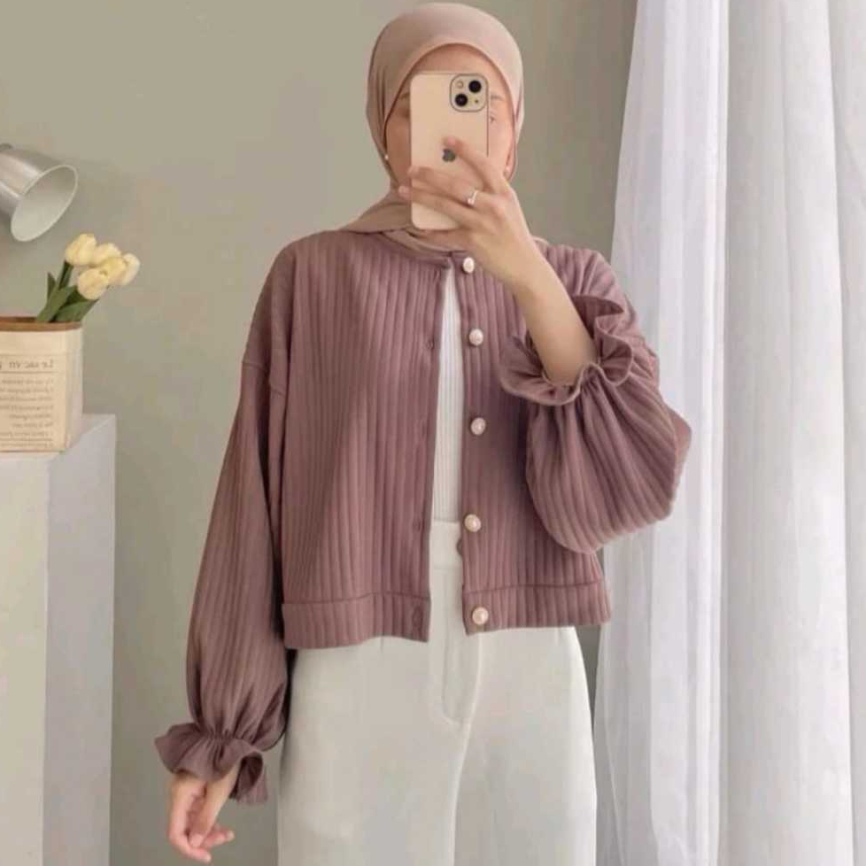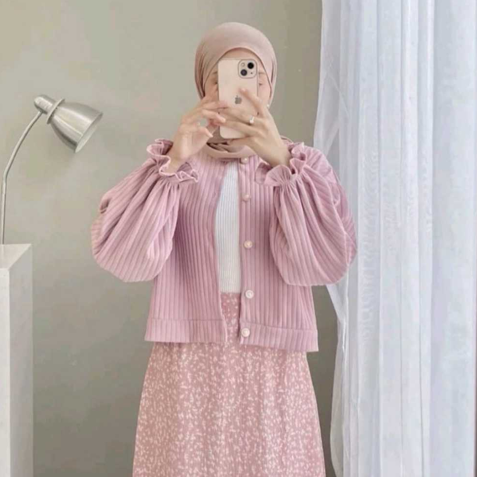 CLOTHES MART - MERSI CARDIGAN HORNET PUFFY KNIT KOREAN STYLE CARDIGAN BUTTON KANCING VINTAGE