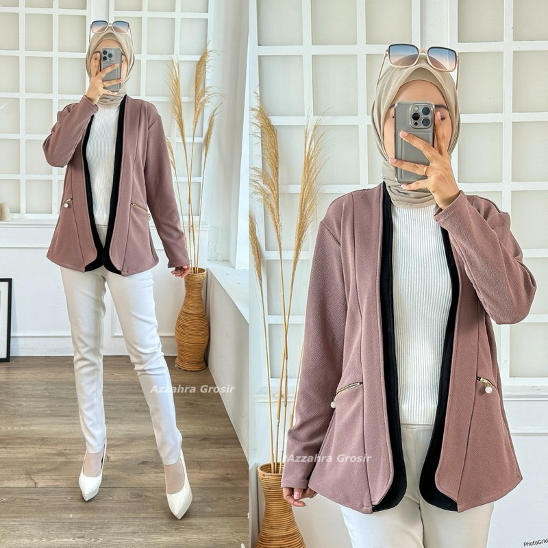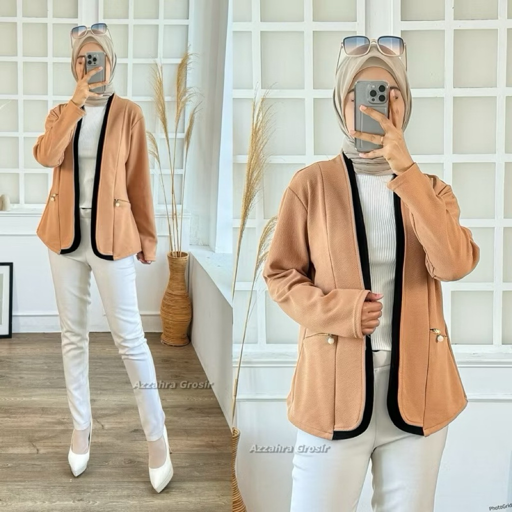 AM - TIFFANIE CARDIGAN WANITA OUTER KOREAN STYLE DOUBLE POCKET FORMAL INFORMAL