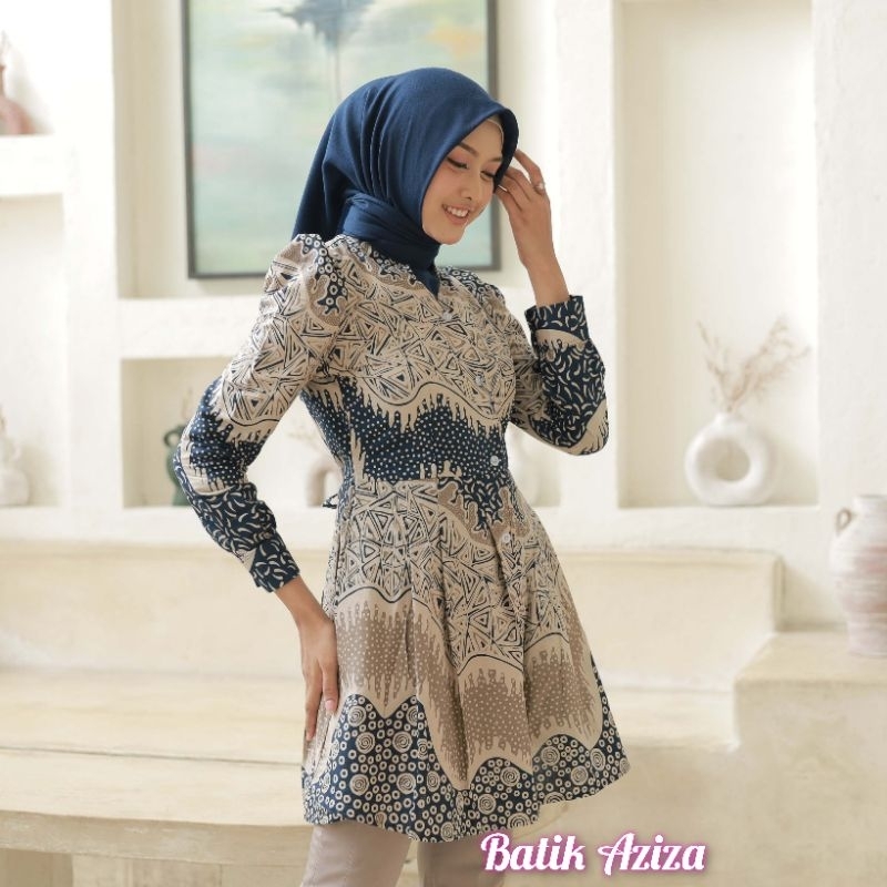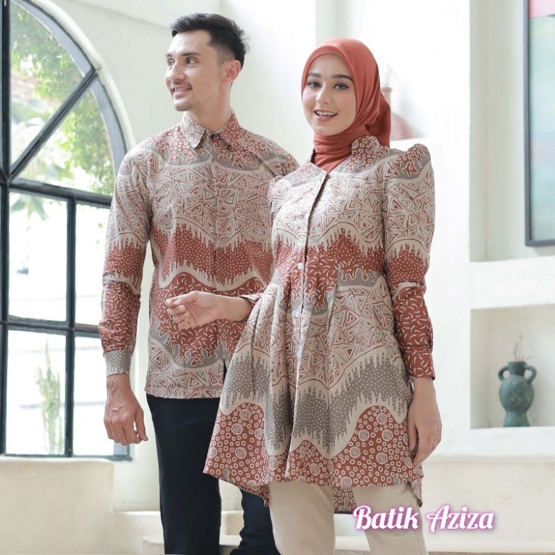 COUPLE BATIK TUNIK BATIK MAHARANI LENGAN PANJANG MODEL PUFFY PRINCES KANCING DEPAN