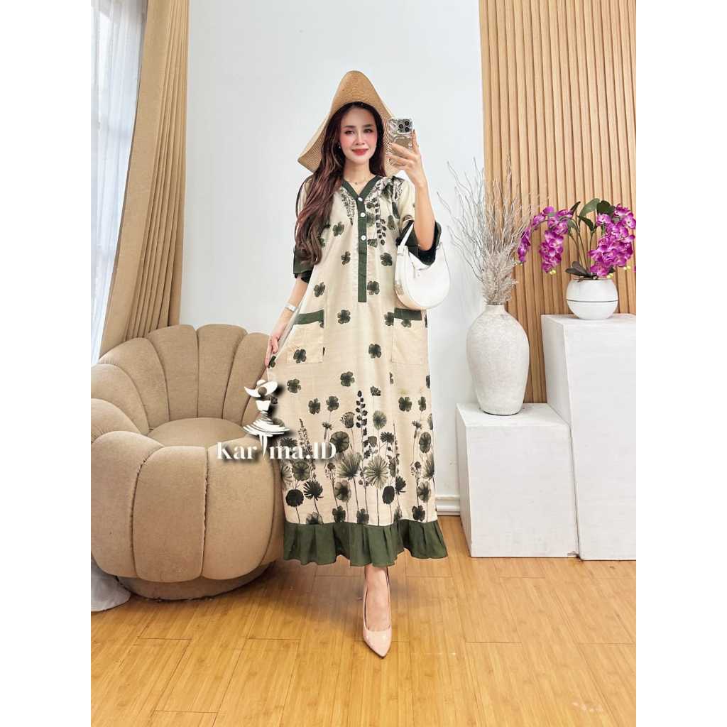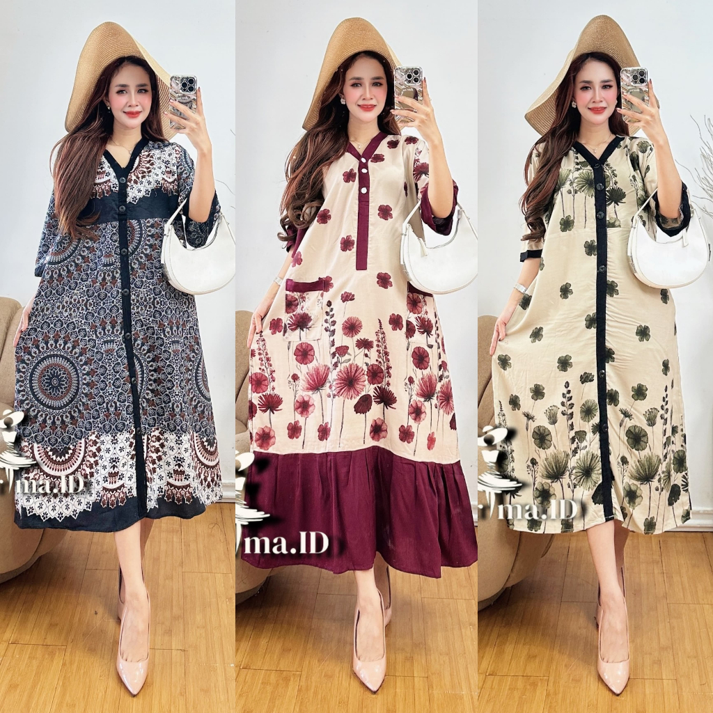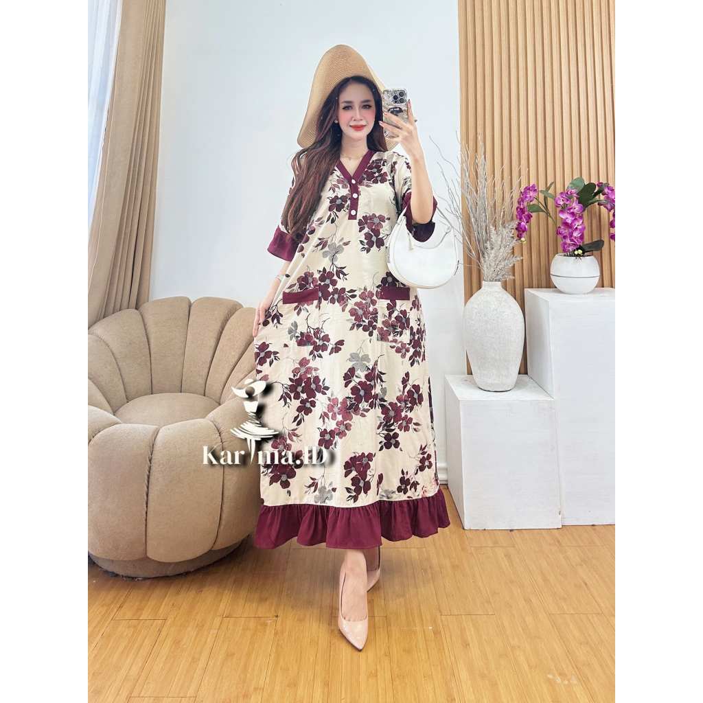 DASTER PIYAMA RAYON PREMIUM GRADE A SAKU DEPAN LD 120 DASTER KEKINIAN BUSUI KANCING DEPAN