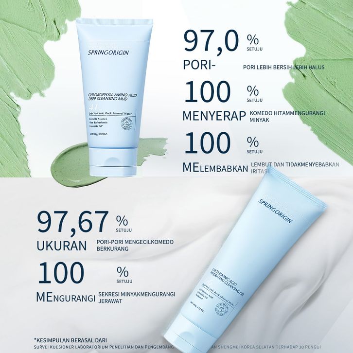 Beli 19ratis 1 SPRINGORIGIN Lactobionic Acid Jerawat Gel Cleanser 100g + Chlorophyll Amino Acid Deep Cleansing Mud 100g