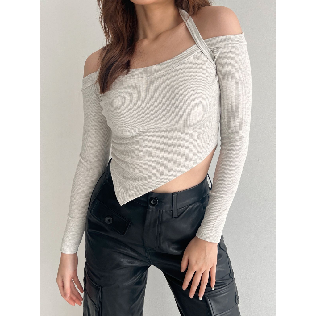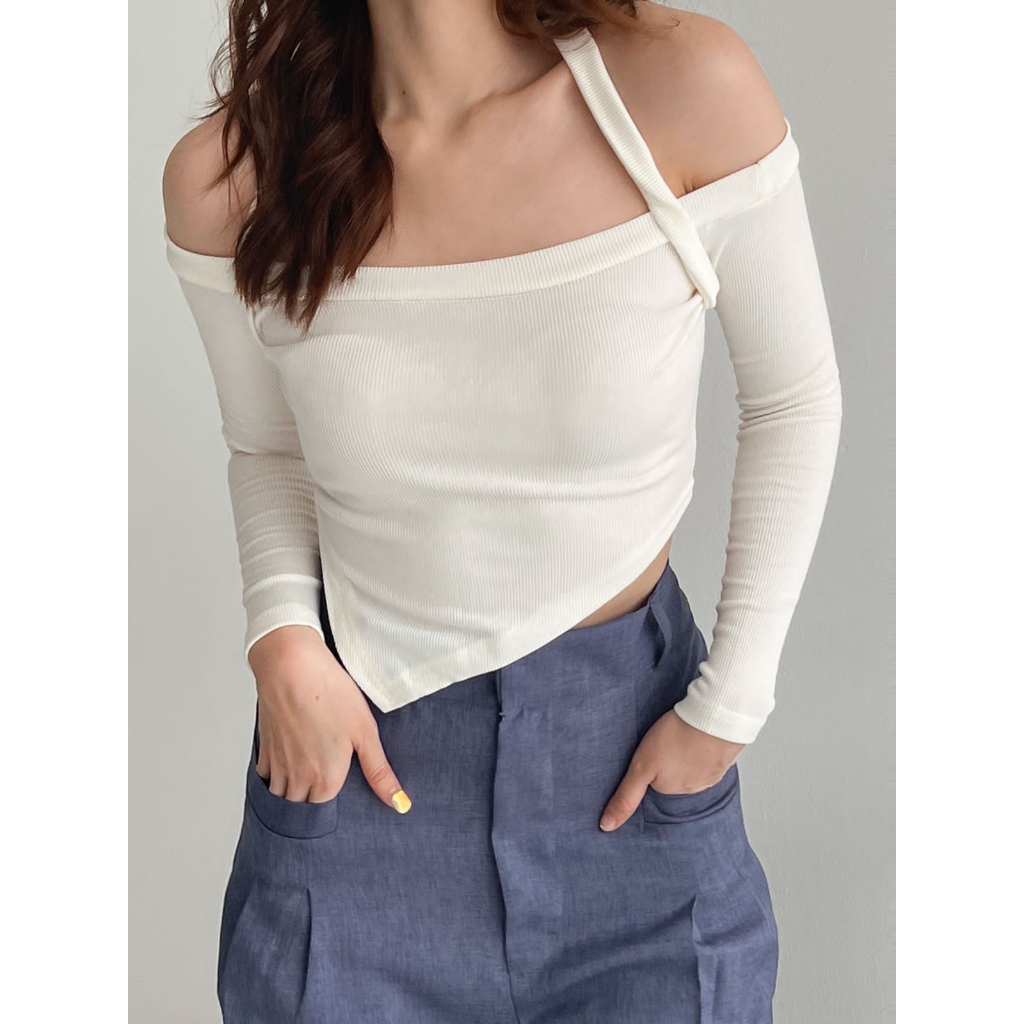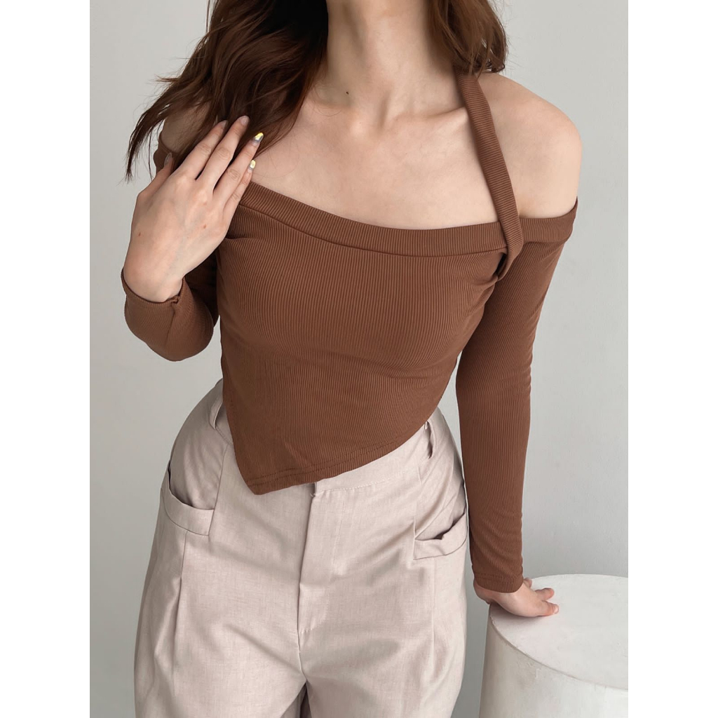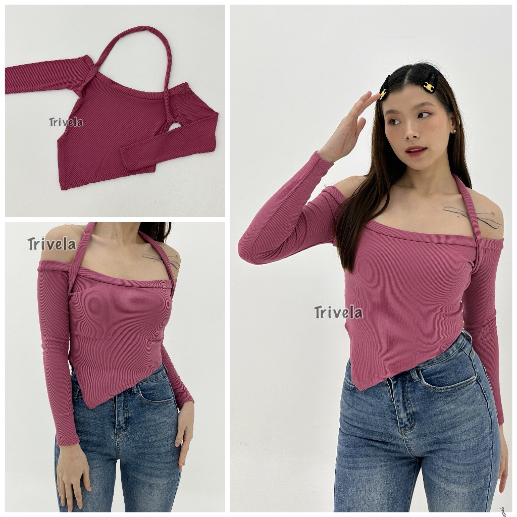 FLORYN HALTER NECK TWO WAYS CROP S-XXL / BAJU WANITA KNIT KOREAN / 002 FLORYN NKD
