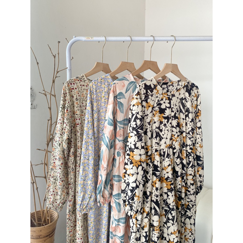 ALAINA MIDI DRESS RAYON PREMIUM VINTAGE BUNGA-BUNGA