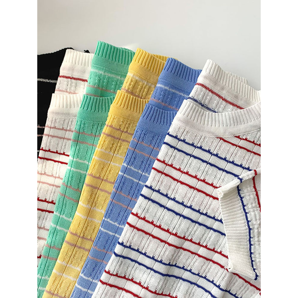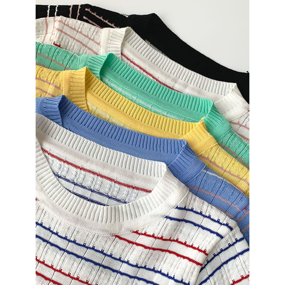 THE MONSEUR GALLERY KAOS RAJUT LENGAN PENDEK WANITA STRIPED T-SHIRT KOREAN STYLE