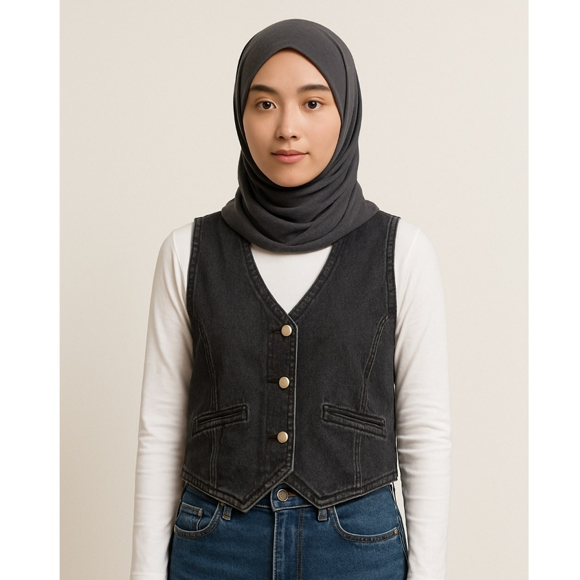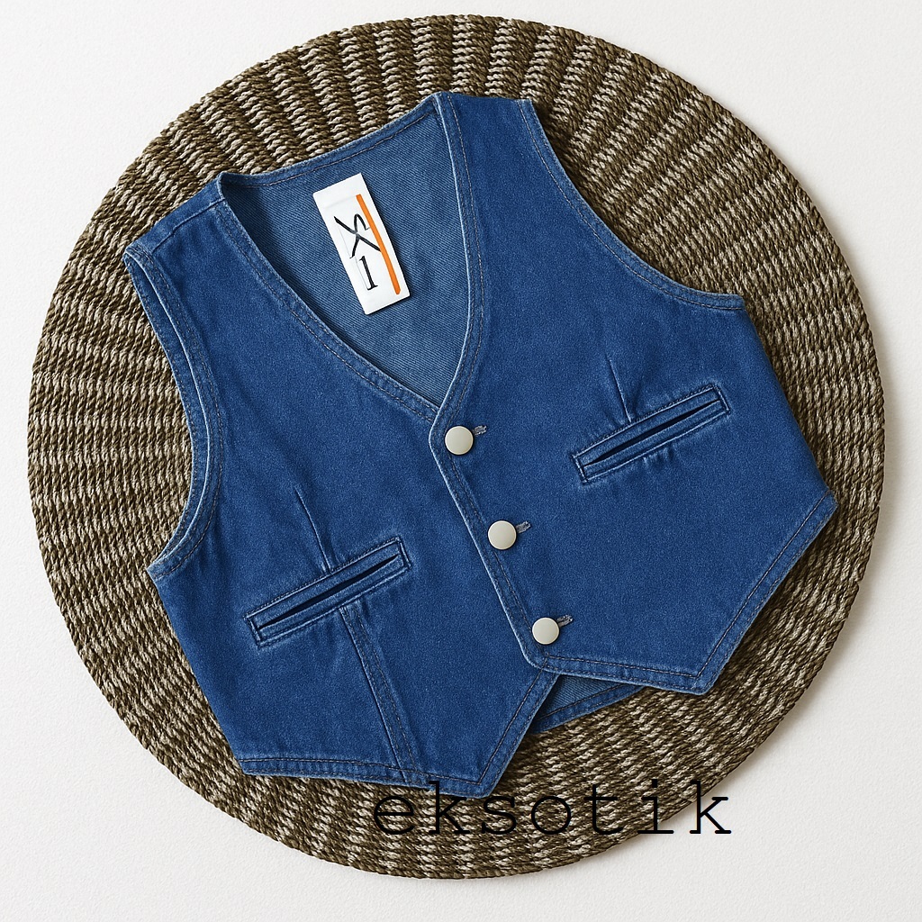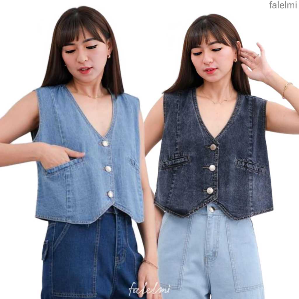 [Mall] VEST ROMPI JEANS KOREA KOREAN STYLE WANITA - ATASAN CROP DENIM WANITA