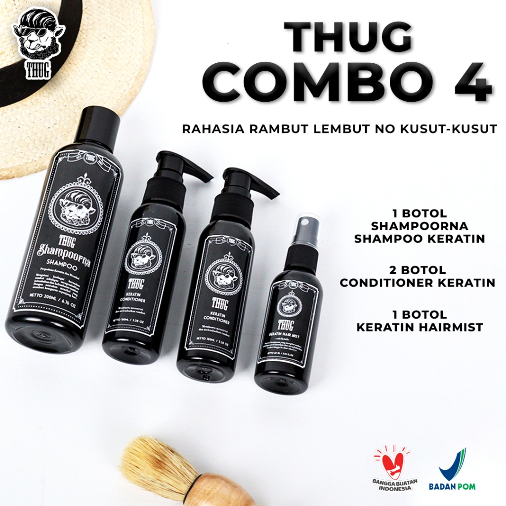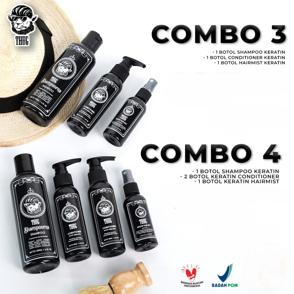Set Shampoo Conditioner Thug Pelurus Dan Pelembut Rambut Keratin Wangi Combo 3/4