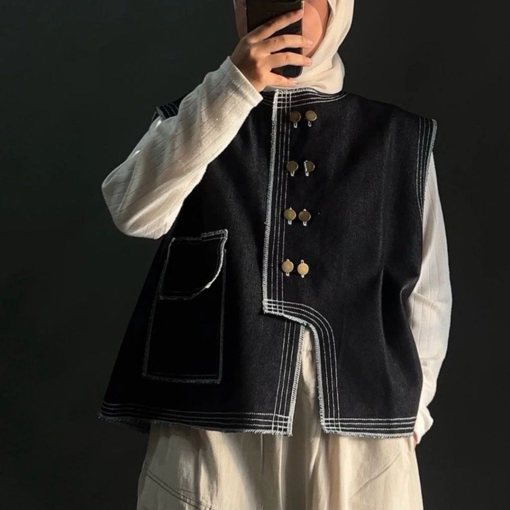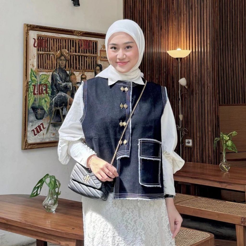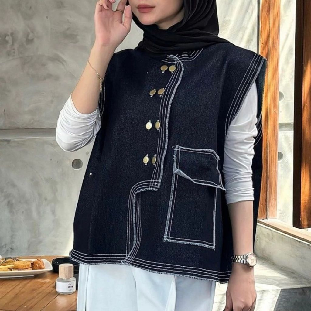 NJW - NUZZY VEST JEANS PREMIUM SET KEMEJA WANITA OVERSIZED WOMAN KOREAN STYLE OVERSIZED