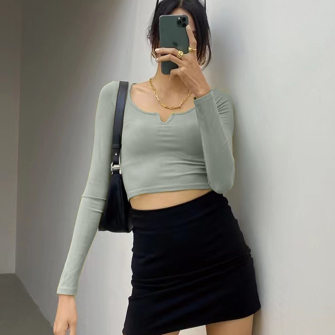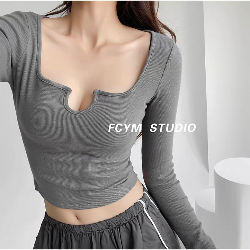 【PREMIUM】 SQUARE NECK LONG SLEEVE CROP T0P 7287 (S/M/L)