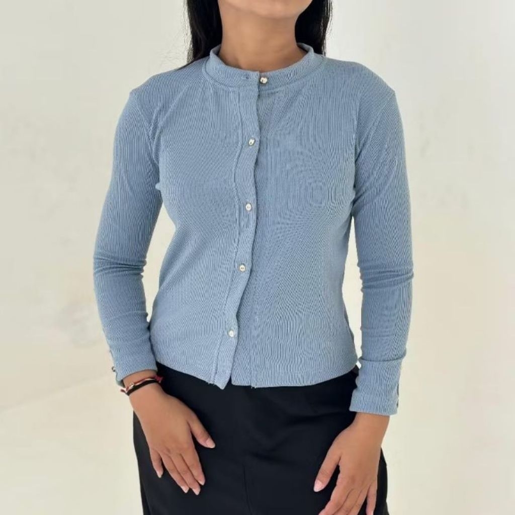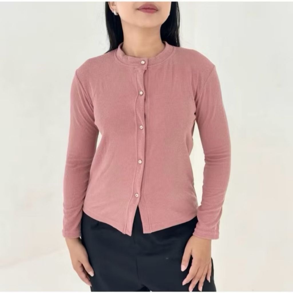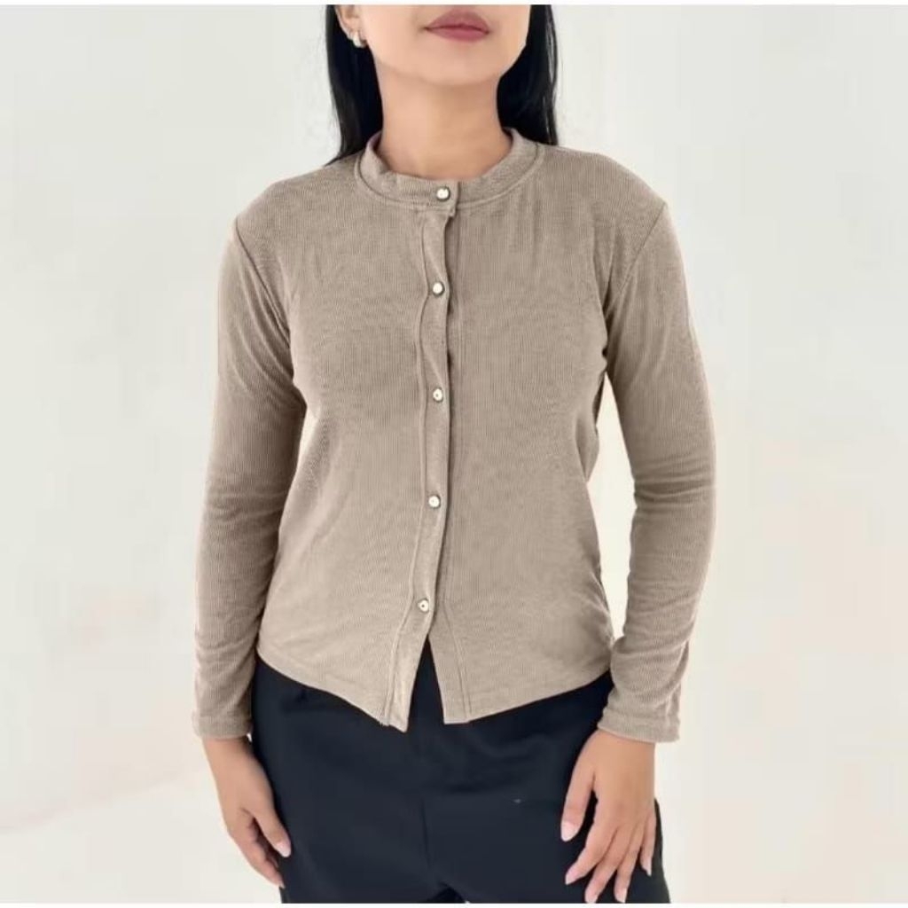 AIJO | LIZZIE CARDIGAN - ATASAN WANITA BLOUSE KOREAN STYLE LENGAN PANJANG KNITWEAR CARDIGAN RIB TERBARU