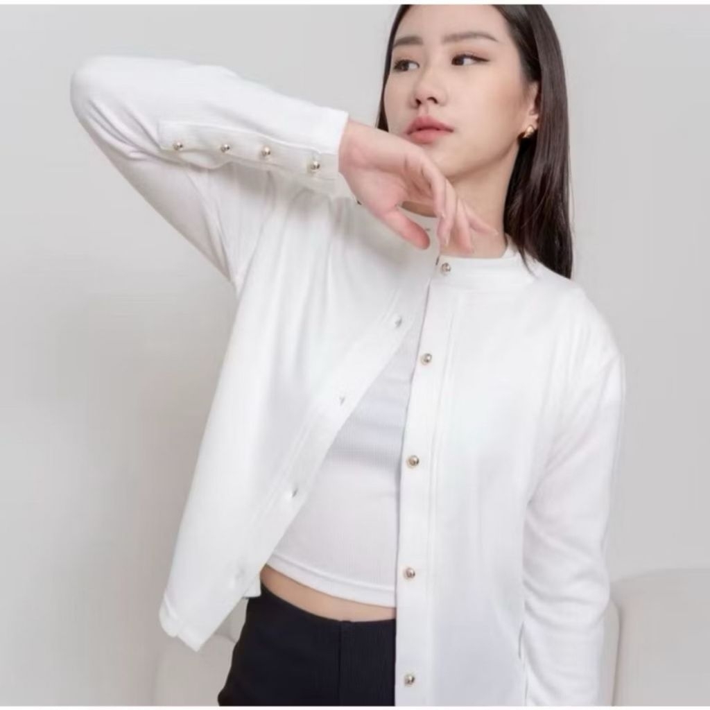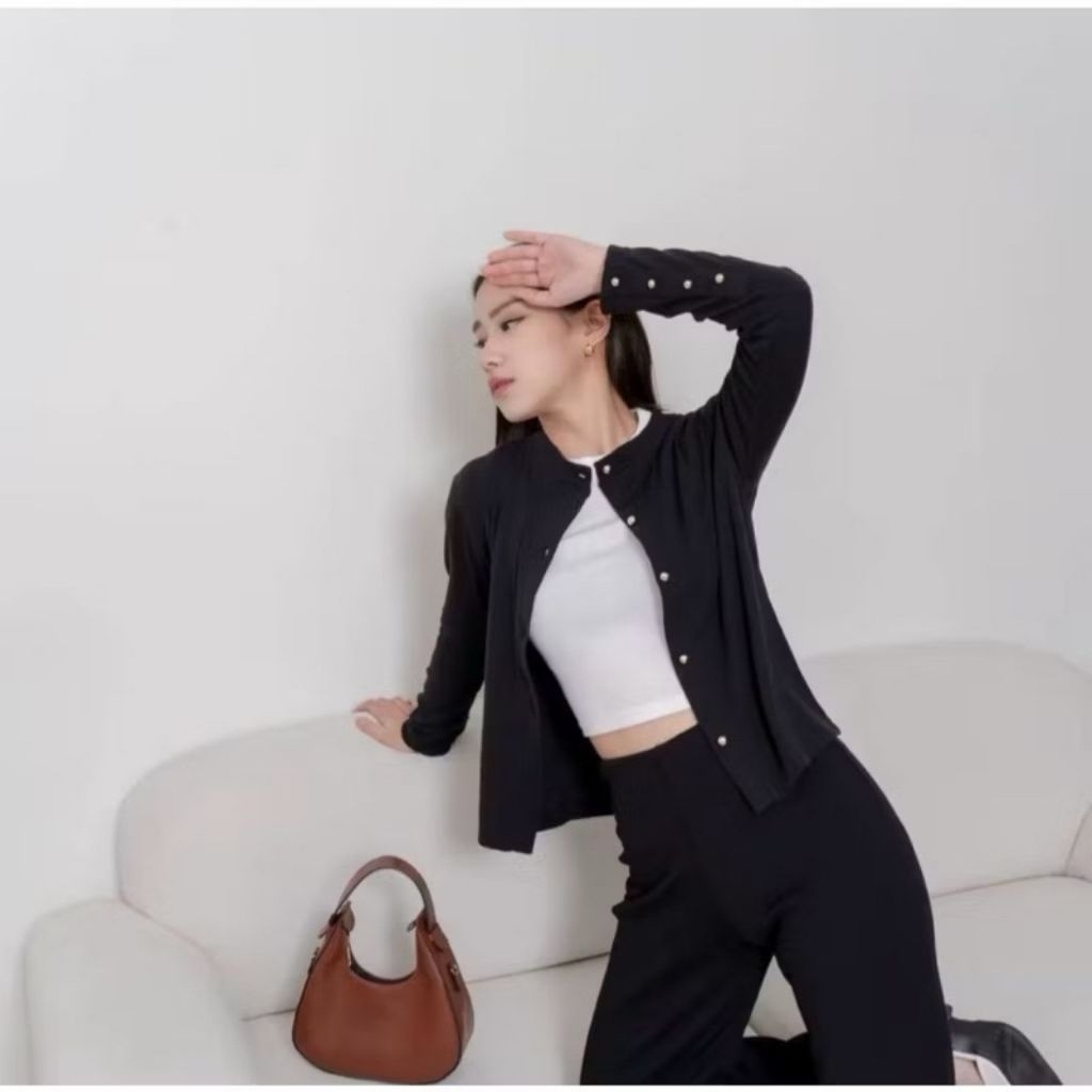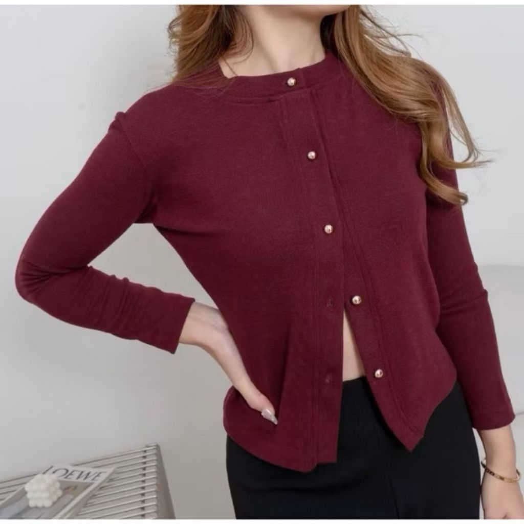 AIJO | LIZZIE CARDIGAN - ATASAN WANITA BLOUSE KOREAN STYLE LENGAN PANJANG KNITWEAR CARDIGAN RIB TERBARU