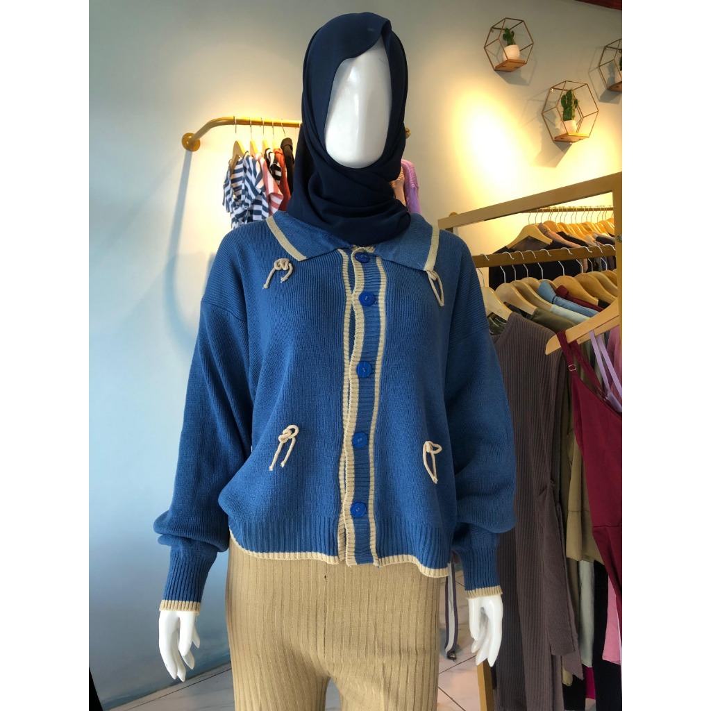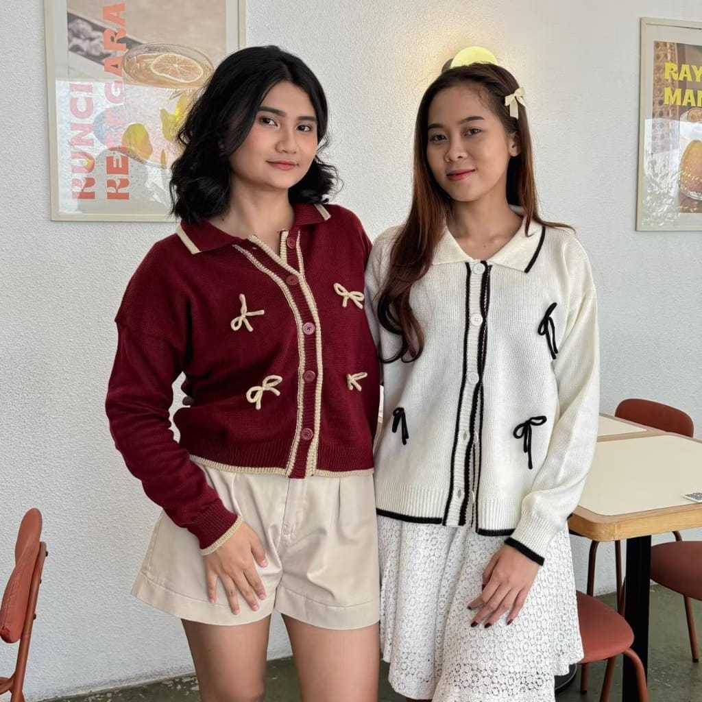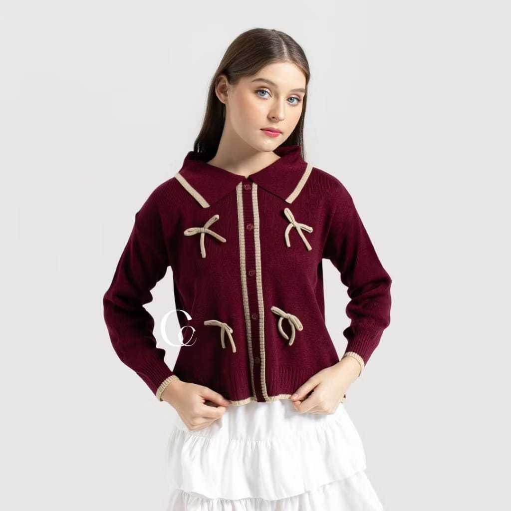 KEIKO CARDIGAN KNIT / REBECCA CARDIGAN PITA CONQUETTE RAJUT WANITA / RAHELIA BAJU POLO ATASAN
