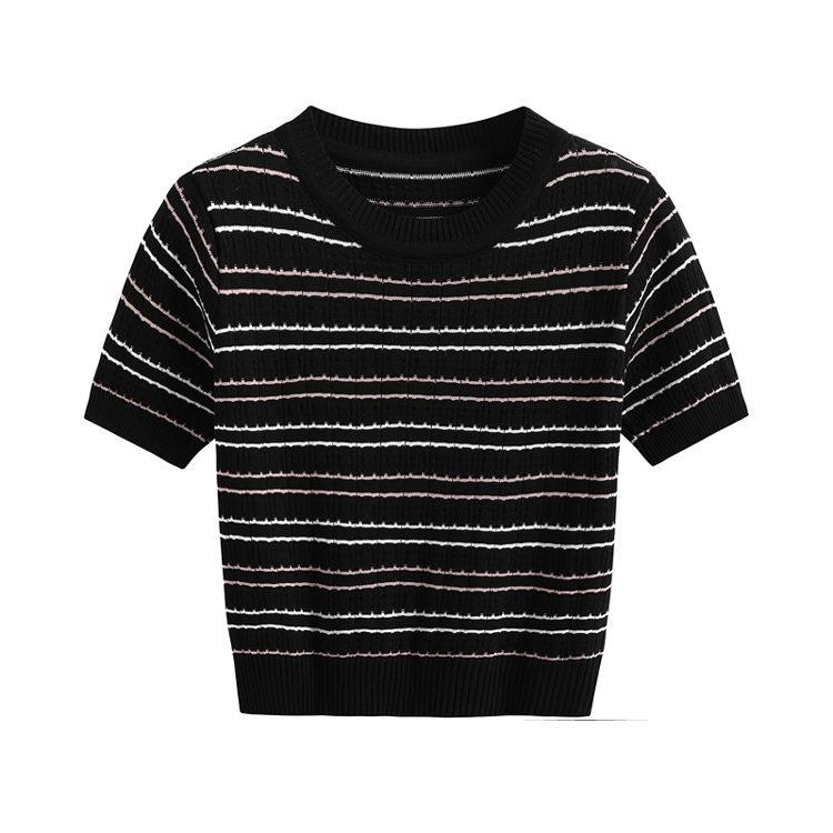 THE MONSEUR GALLERY KAOS RAJUT LENGAN PENDEK WANITA STRIPED T-SHIRT KOREAN STYLE