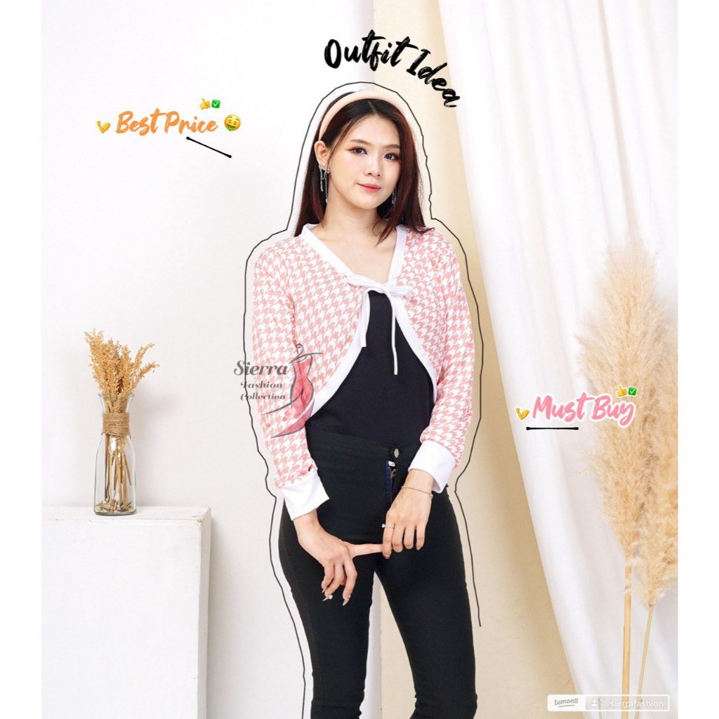 CARDIGAN NOVA KNIT HOUNDSTOOTH RIB RAJUT KOTAK-KOTAK