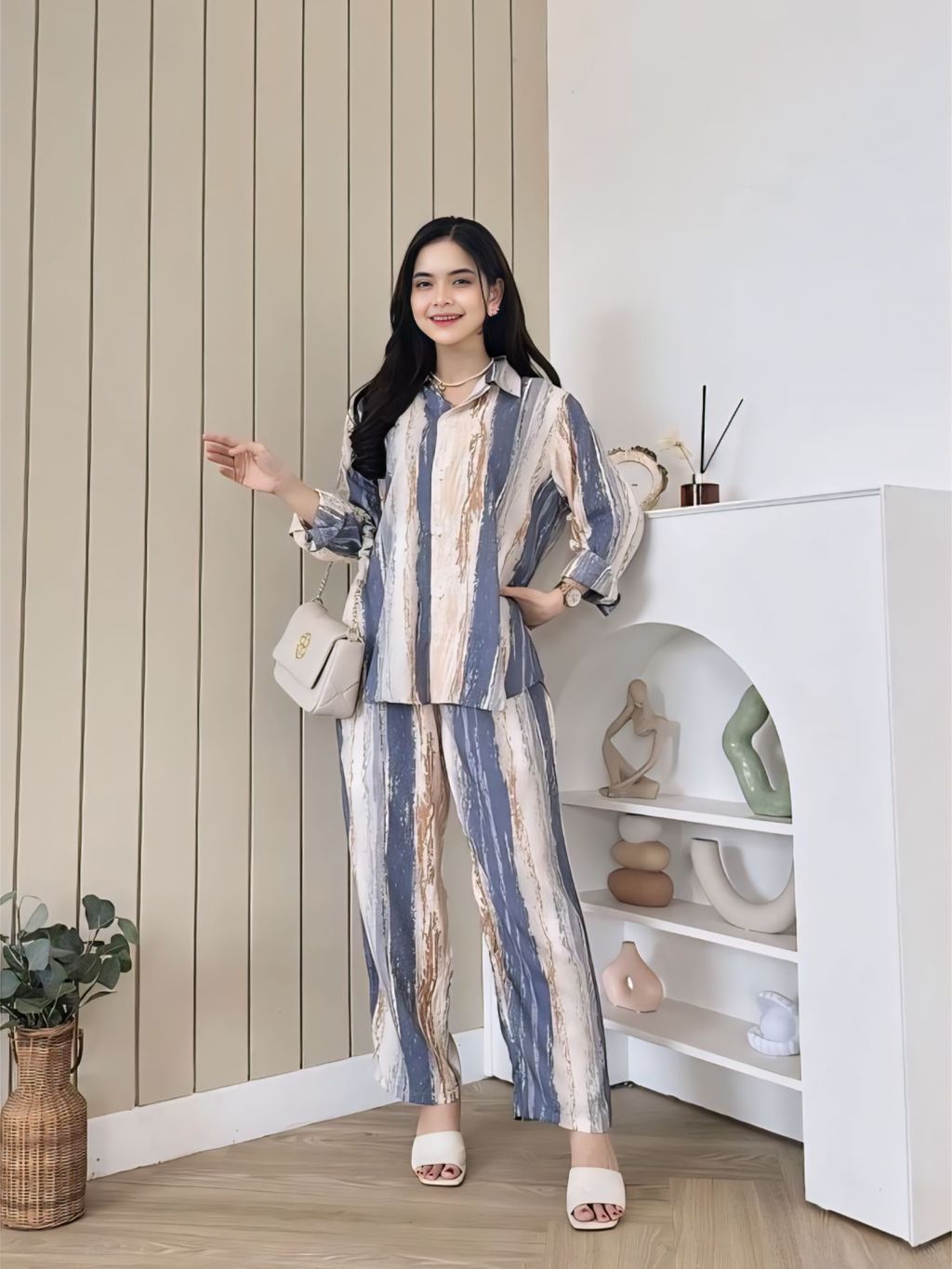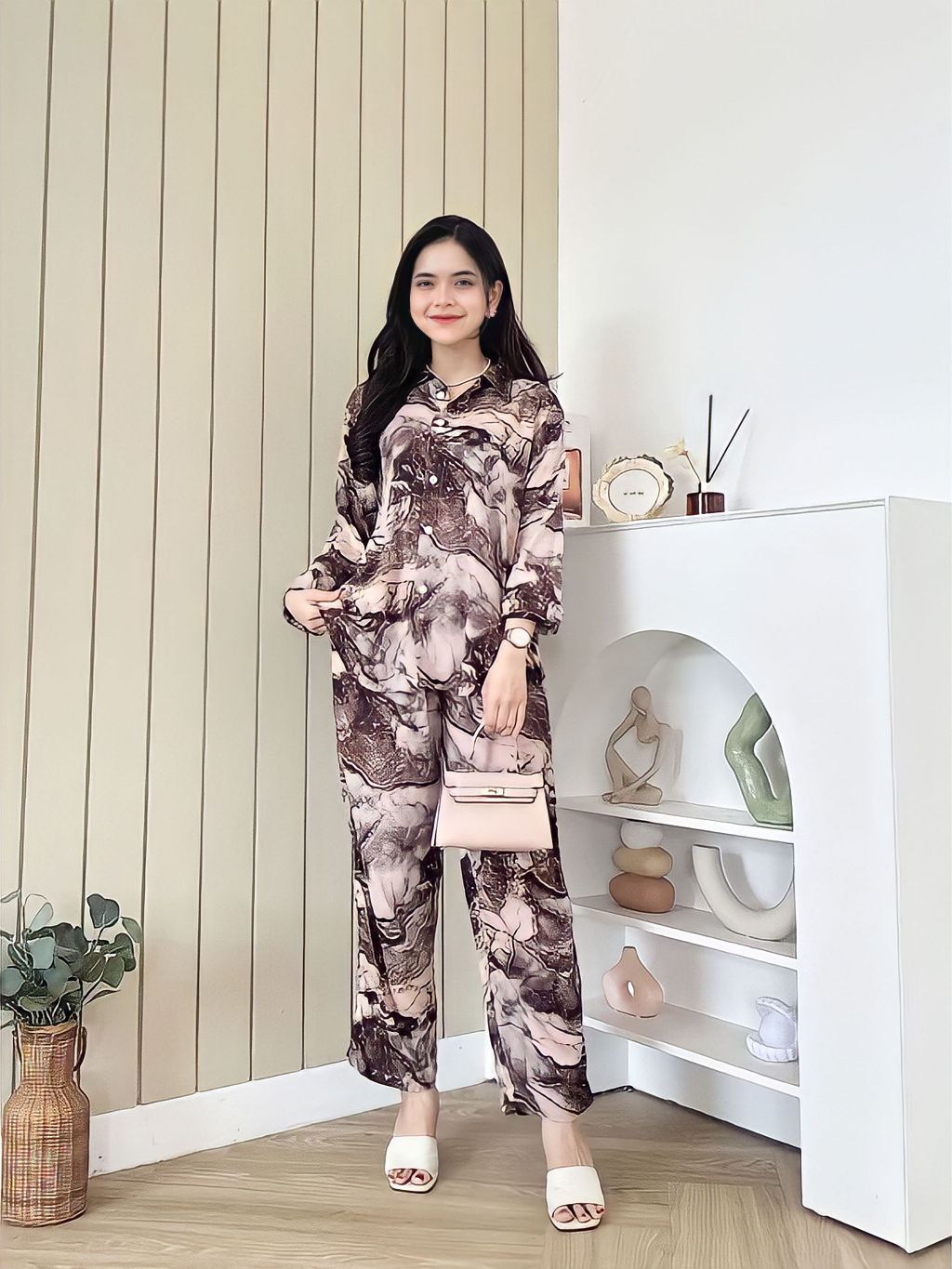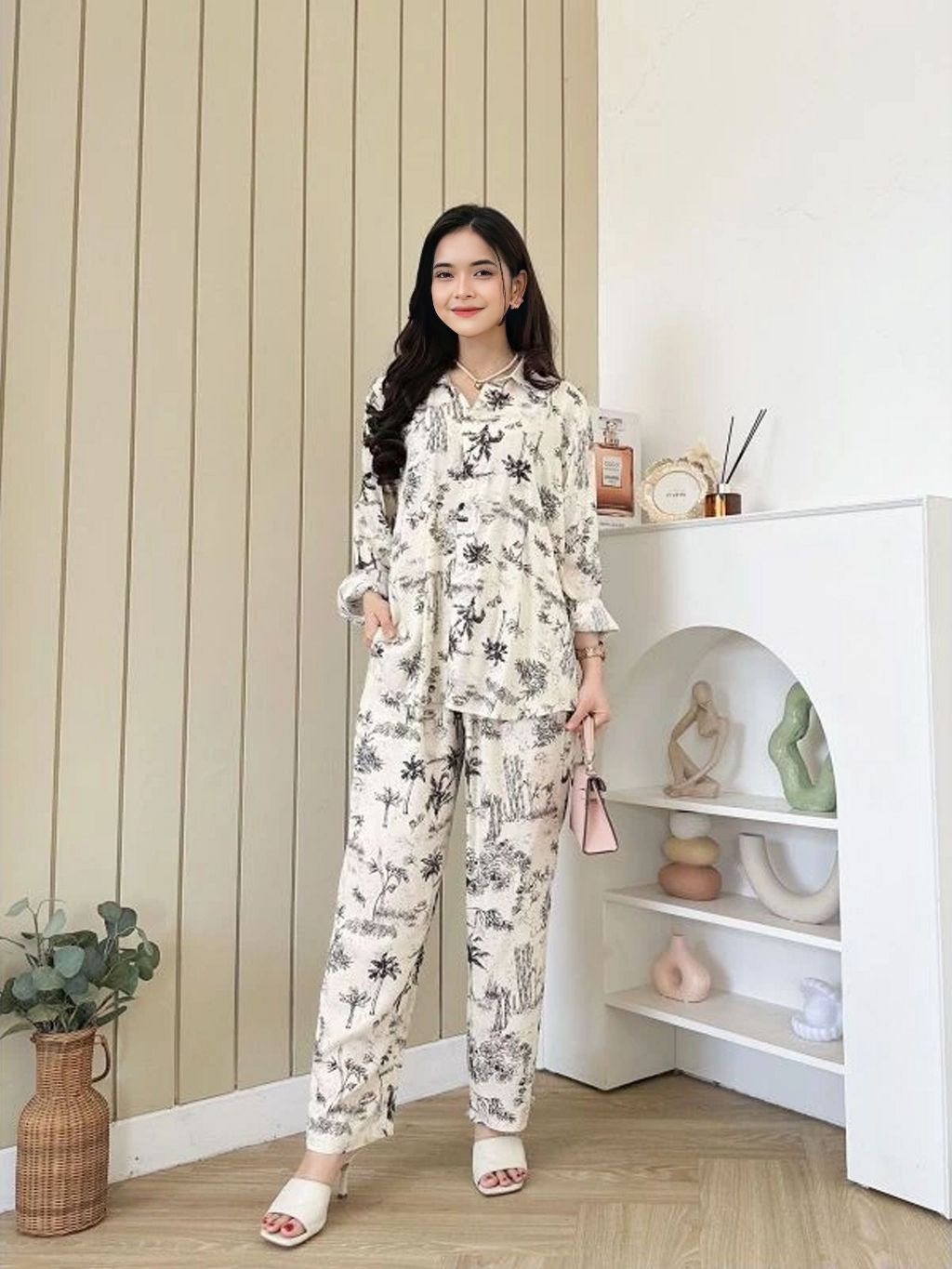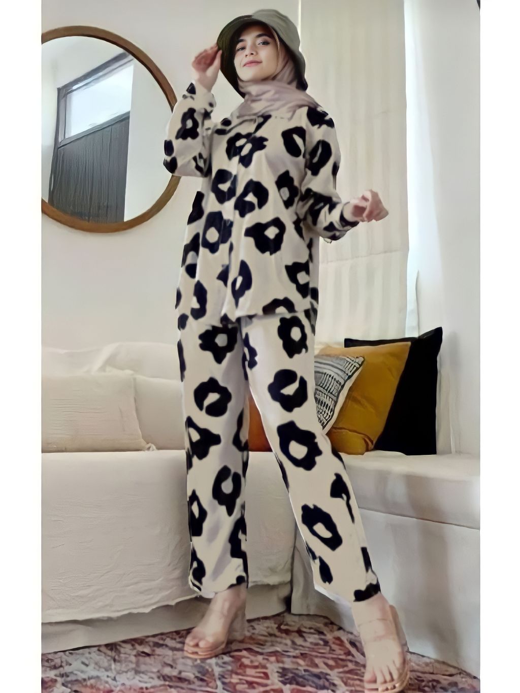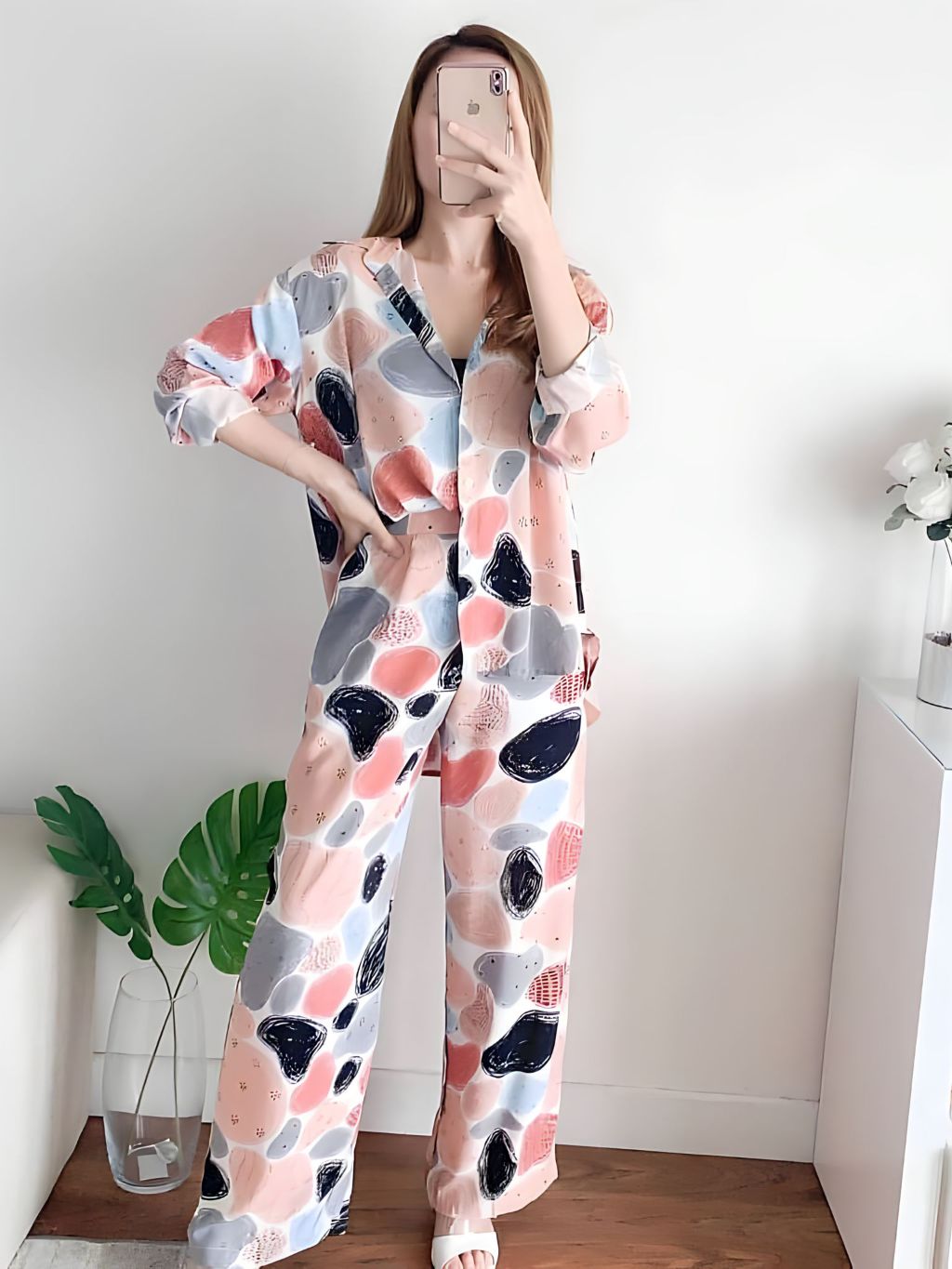 BAJU ONE SET RAYON PIYAMA SETELAN LENGAN PANJANG WANITA KEKINIAN DEWASA JUMBO TERBARU KEKINIAN