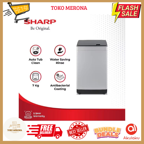 MESIN CUCI 1 TABUNG SHARP Top Loading ES- M7000P-GG 7KG, dan ES-M8000P-GG 8KG.LOADING BUKAAN DEPAN MURAH