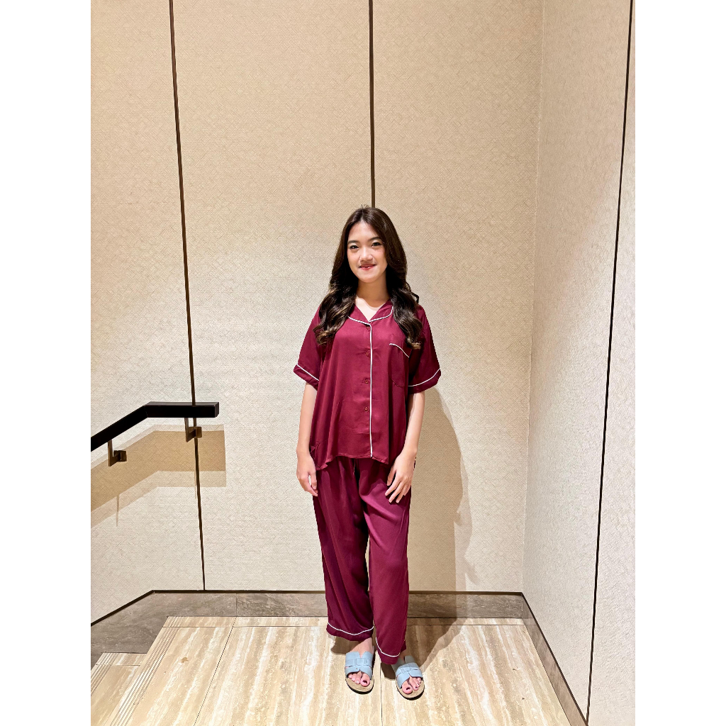 GISELLE PIYAMA SETELAN PIYAMA LENGAN PENDEK CELANA PANJANG RAYON TWILL ONE SET DEWASA BAJU TIDUR