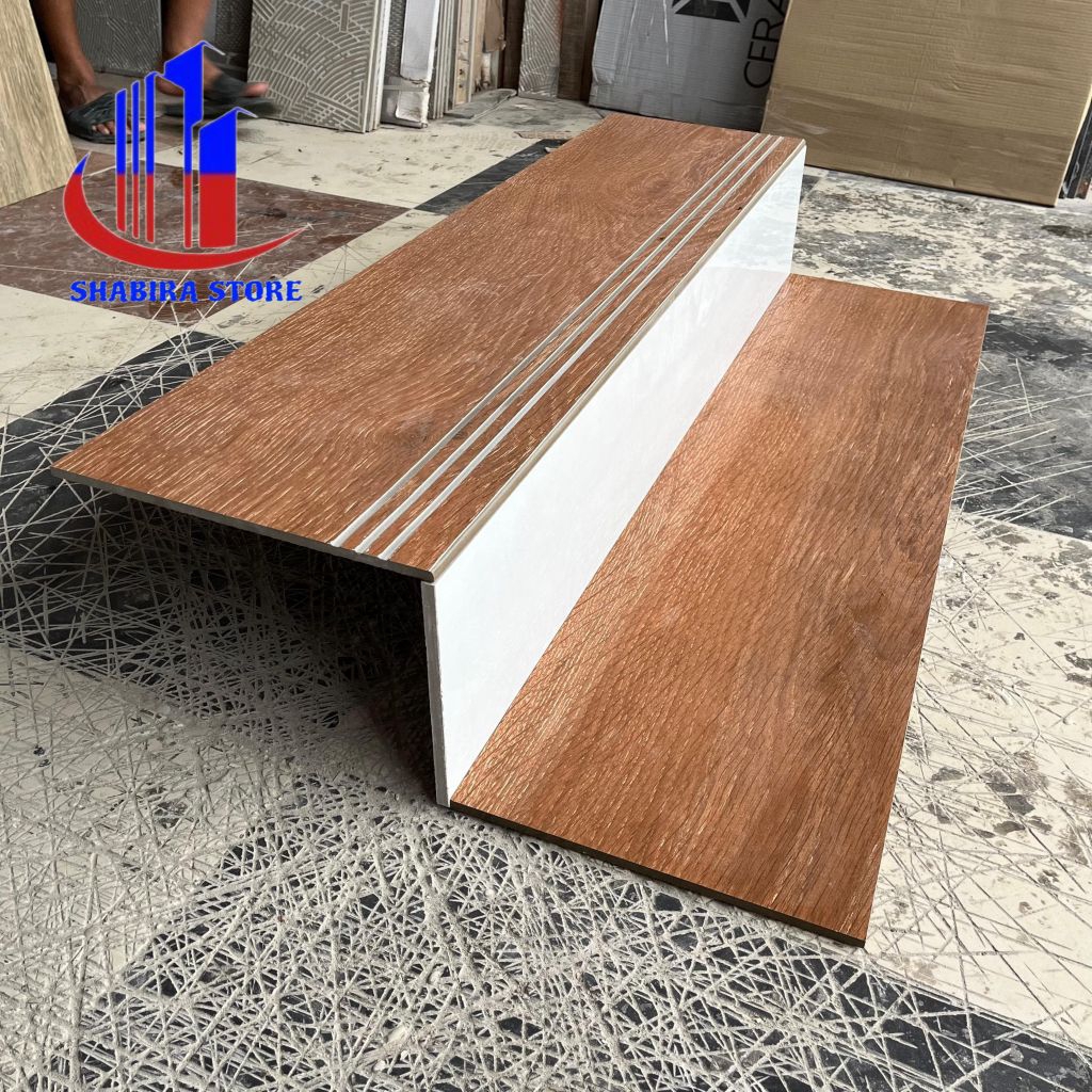 Granit keramik pijakan tangga motif kayu matt 30×90+ 20×90stepsnosing custom list plint bodres pijakan tangga