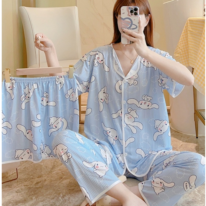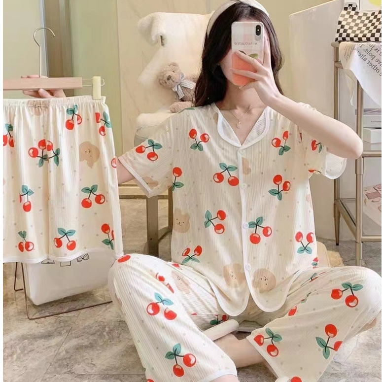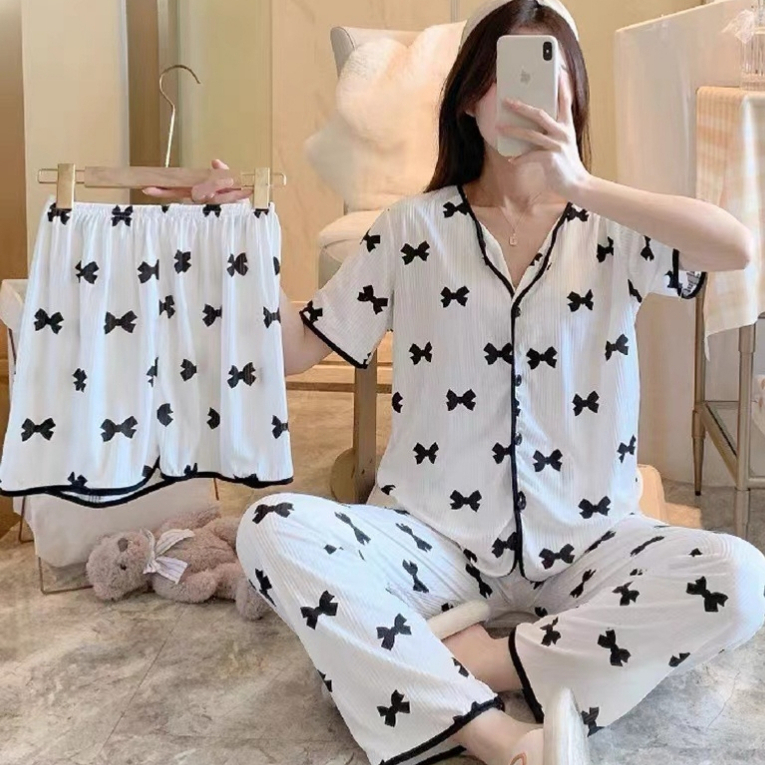 MP BAJU TIDUR SETT 3IN1 MODEL KANCING DEPAN LENGANG PENDEK PIYAMA IMPORT PREMIUM WANITA CELANA PANJANG DAN PENDEK 001