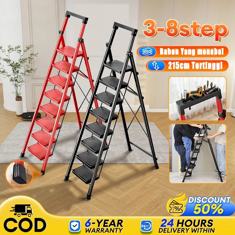 Tangga besi lipat (3/4/5/6/7/8 anak tangga) tangga lipat baja karbon tangga lipat rumah tangga tangga lipat beban 300KG