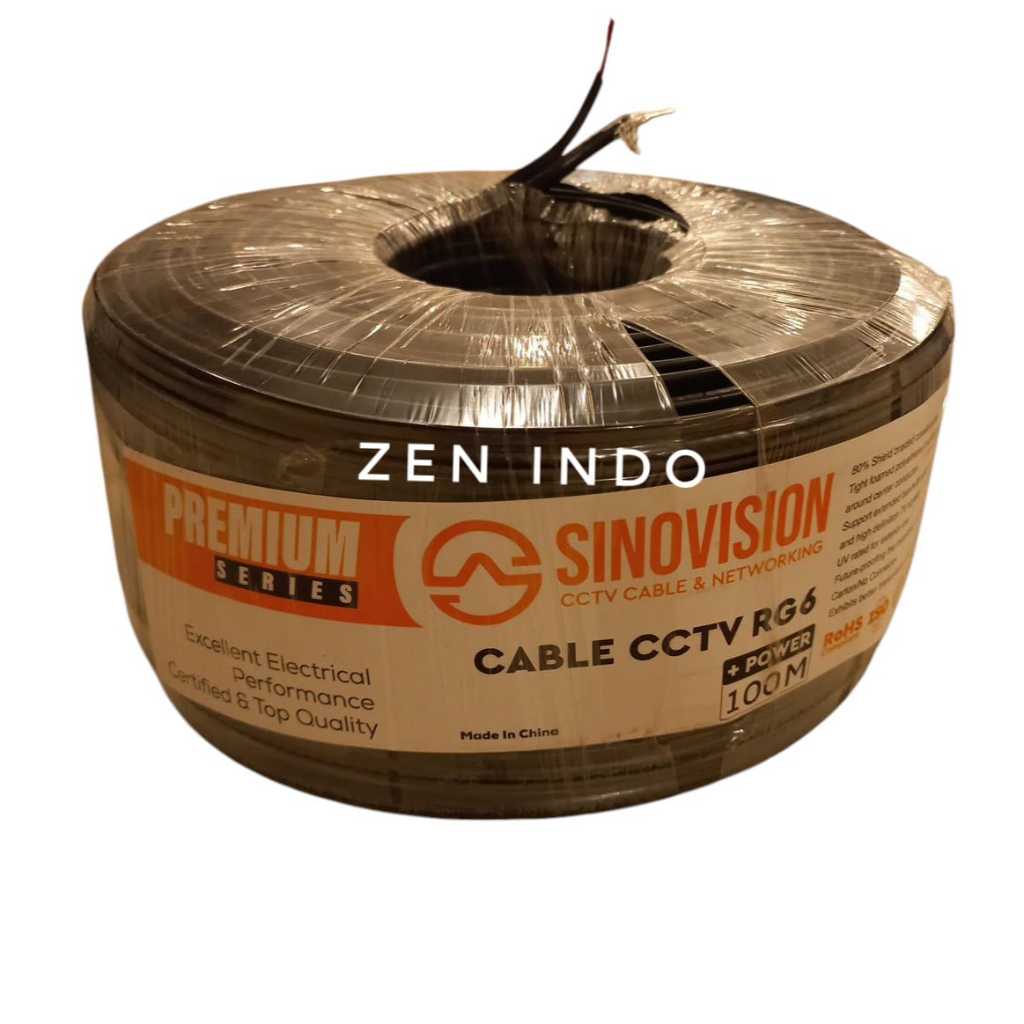 SINOVISION Kabel Coaxial CCTV RG6+Power HITAM Outdoor Premium Series 100M 300M