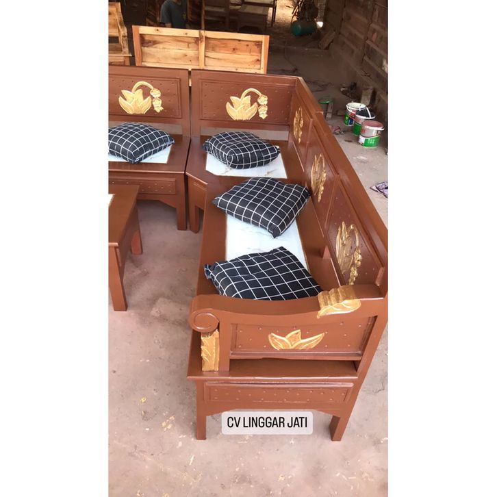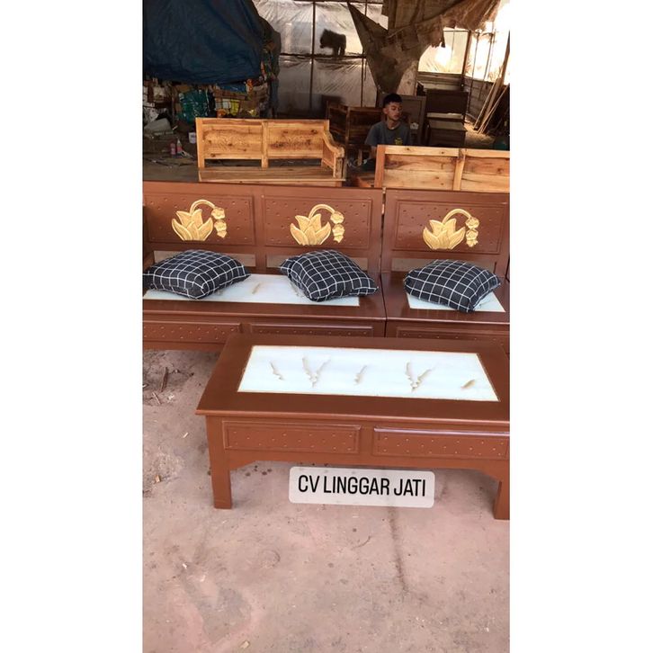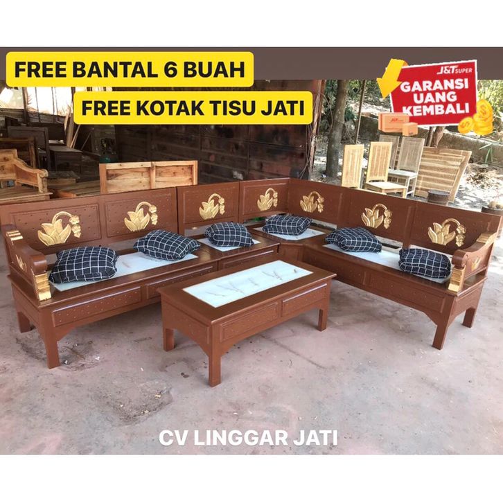 kursi kayu ruang tamu Kursi Tamu Sudut Minimalis Kayu Jepara Teratai Marmer best seller dan terlaris