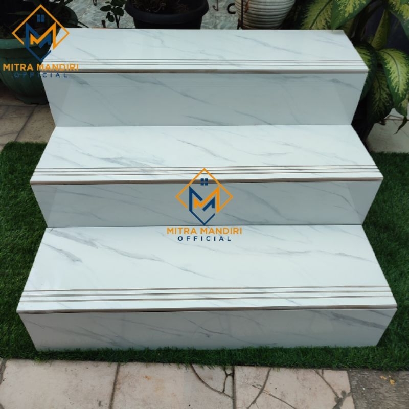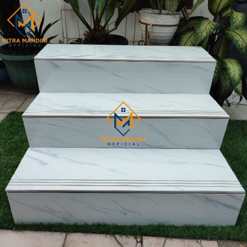 Granite tangga 30x80 20x80 / 30x90 20x90 / 30x100 20x100 / 30x120 20x120 Chalkas white Carrara / 1set