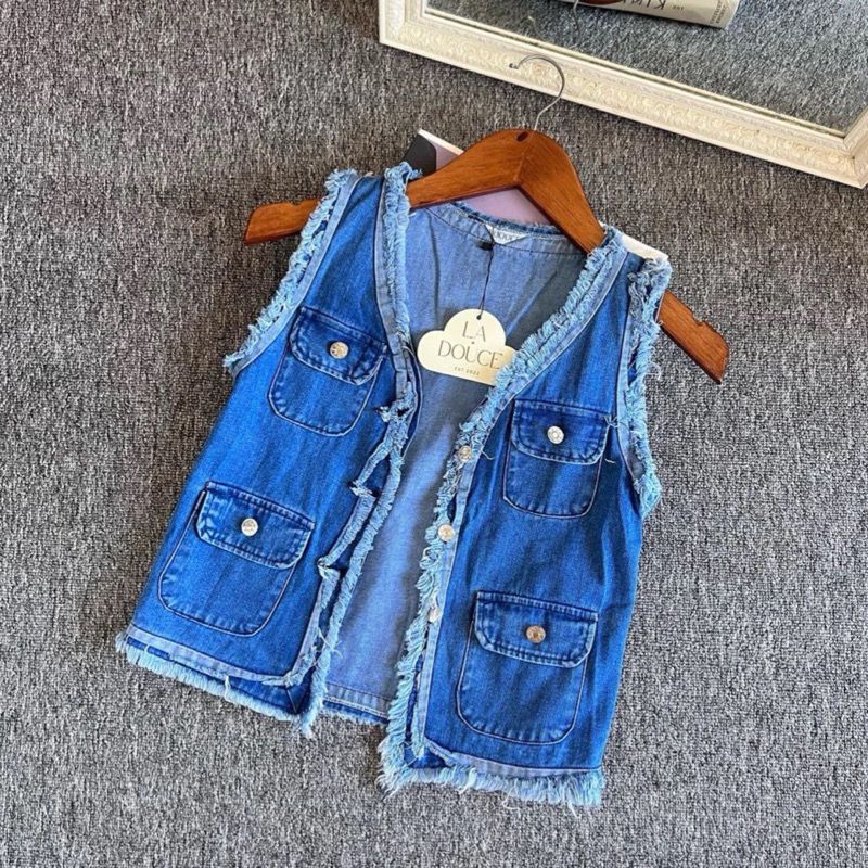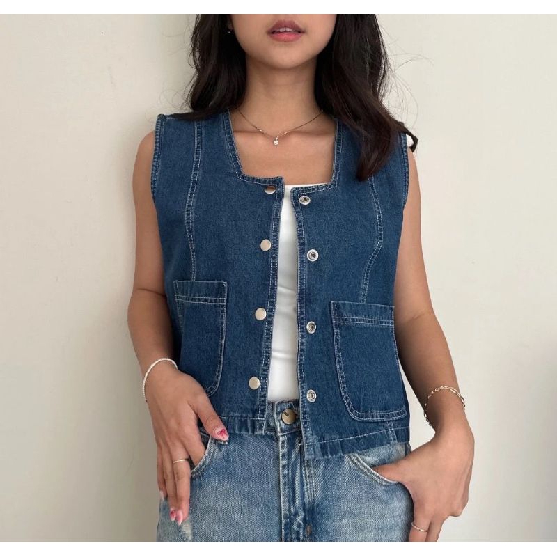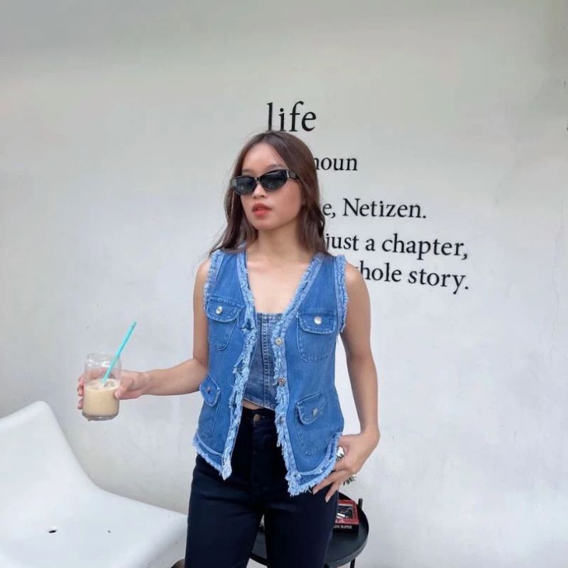 [Mall] ASOKA - VEST JEANS DENIM PREMIUM / ATASAN WANITA ROMPI OUTER CROP TERBARU KEKINIAN